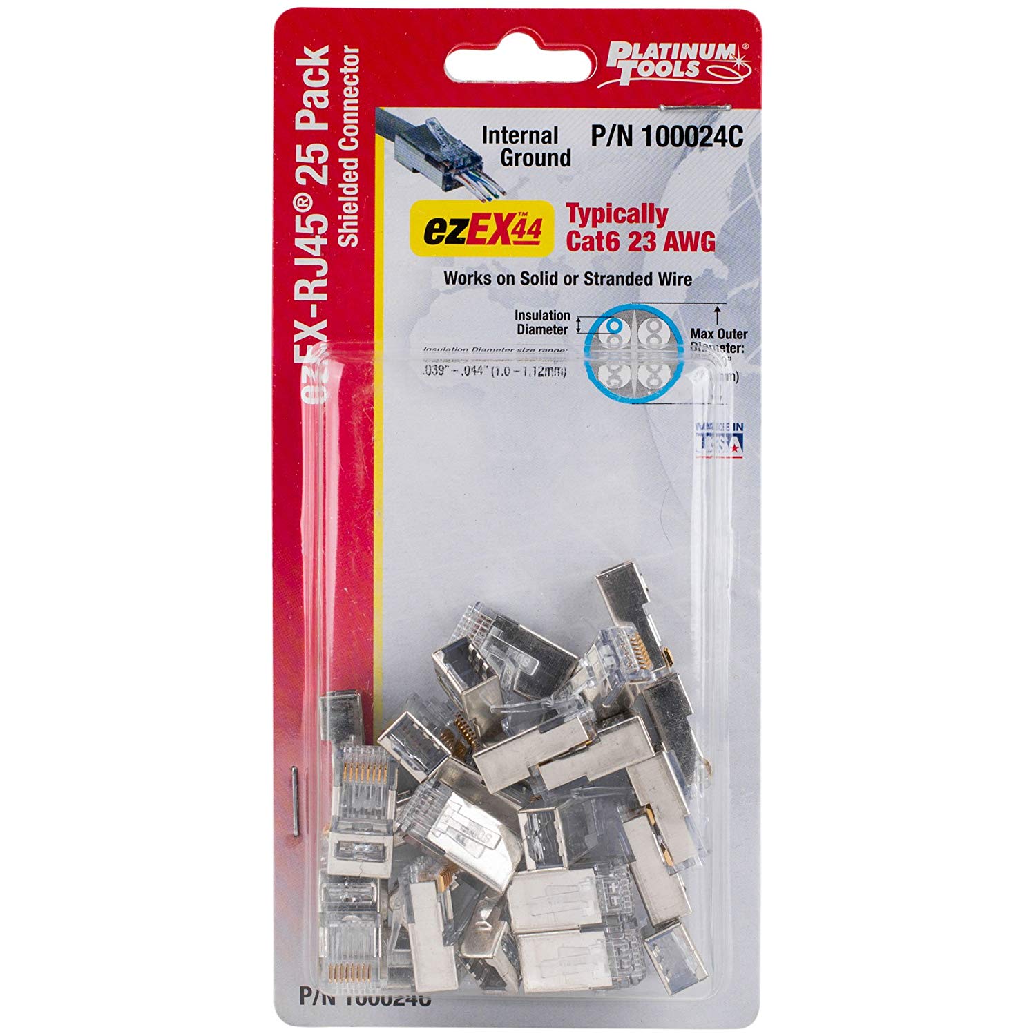 Platinum Tools 100024C ezEX44 -Shielded CAT6 Connector, Internal Ground - Pack of 25