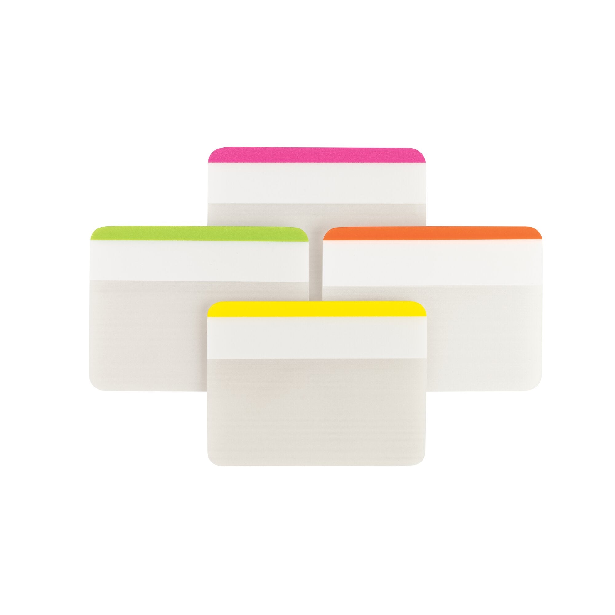 Post-it Tabs in 2 inch size easily organize hanging file folders. Tabs are angled for easy viewing from above file drawers. Lined color bars give you flexibility to organize by color. They are durable, you can write on them, and reposition them when you need to. Assorted Bright Colors. Contains 6 tabs/color, 4 colors, 24 tabs/pack.Post-it Tabs in 2 inch size create necessary order by easily creating sections in planners, binders and calendars. Angled color bars give you flexibility to organize by color but also write on them, and reposition as needed. Tabs are durable. They are also great for planners, binders and file folders. Tabs stick securely and remove cleanly. Color code hanging files folders and according files quickly and easily. Large, easy to write on space which aids in organizing information quickly.. Assorted bright colors bright colors, 24 tabs total.