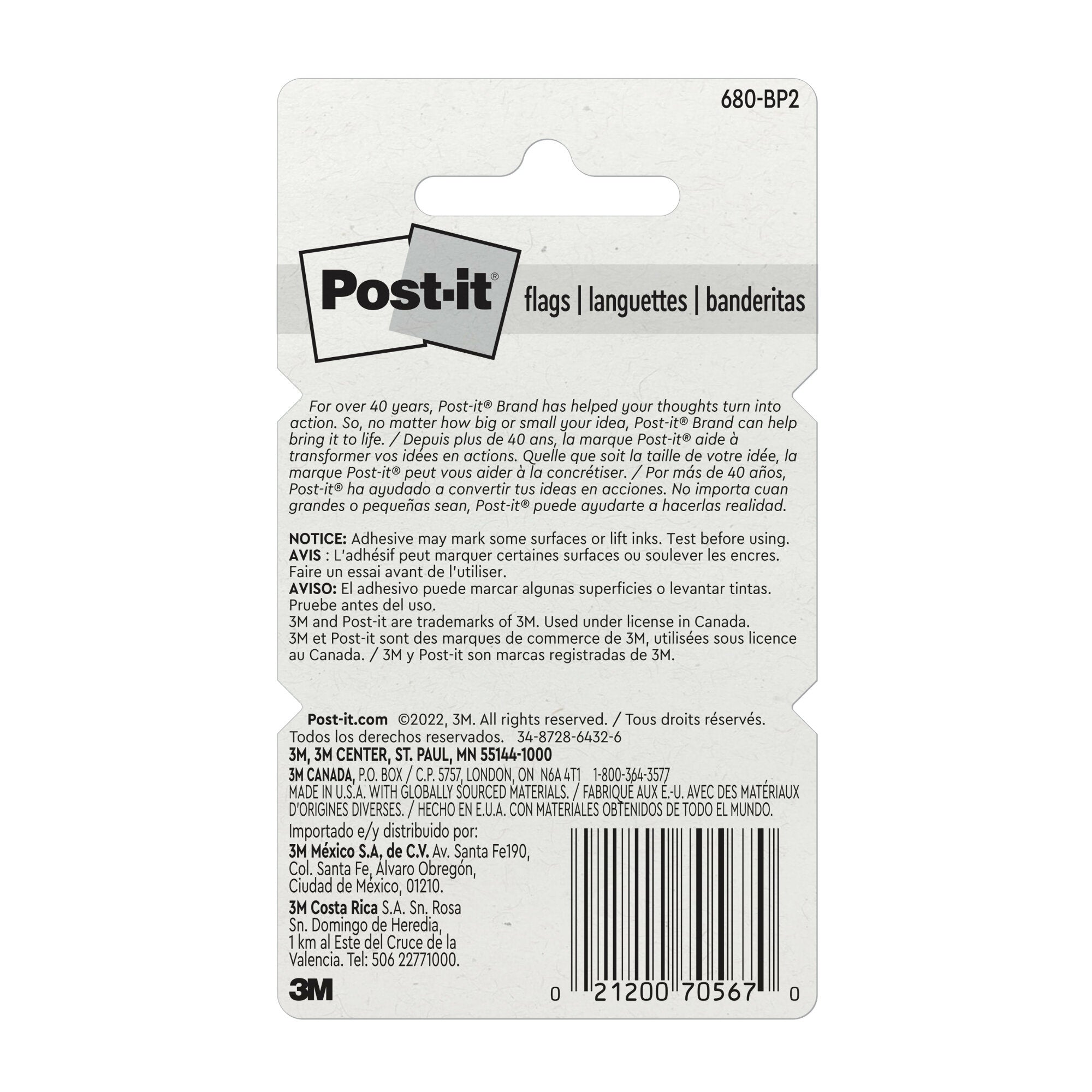 Find it fast with Post-it Flags. They make it simple to mark, flag or highlight important information. They stick securely, remove cleanly and come in a wide variety of colors. Draw attention to critical items or use them to index, file or color code your work, either at home, work or in the classroom.Find it fast with Post-it® Flags in bright eye-catching colors that get noticed. They make it simple to mark or highlight important information in textbooks, calendars, notebooks, planners and more. They stick securely, remove cleanly and come in a wide variety of colors. Draw attention to critical items or use them to index, file or color code your work, either at home, work or in the classroom. This pack contains 2 Dispensers, 150/Dispenser, size .47.