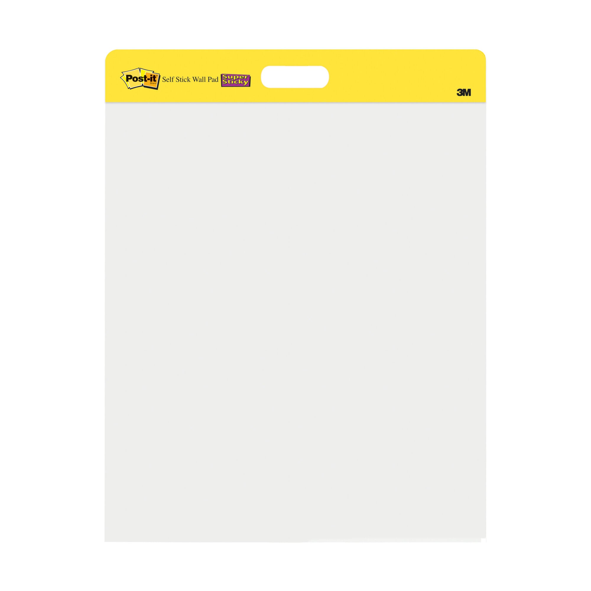 Turns any room into a meeting room. Simplify note-taking at your next meeting with Post-it Self Stick Wall Pad. Adhesive-backed sheets stick to most wall surfaces, and the paper resists bleedthrough. 2 white, 20-sheet pads per package, 20 x 23 inches.For over 30 years, consumers have trusted Post-it® Brand Products. What began with Post-it® Notes, used to remind and communicate, has grown to include Post-it® Easel Pads used to capture and share ideas. With sheets that can stick almost anywhere, Post-it® Easel Pads foster the imaginative thinking that lays the foundation for future growth. So when you want to successfully plan, collaborate, and capture and build on ideas, they're ready to help you succeed. When floor space for an easel stand is limited use Post-it® Wall Pads. Smaller and lighter than full size easel pads, they mount on walls, doors or windows with Command™ Strips. Turn any space into a temporary meeting space. The bright white sheets resists marker bleed through; they stick to most surfaces and can be repositioned again and again, without surface damage. Sheets are 20 inches wide x 23 inches long. There are 20 sheets per pad and two pads per pack.
