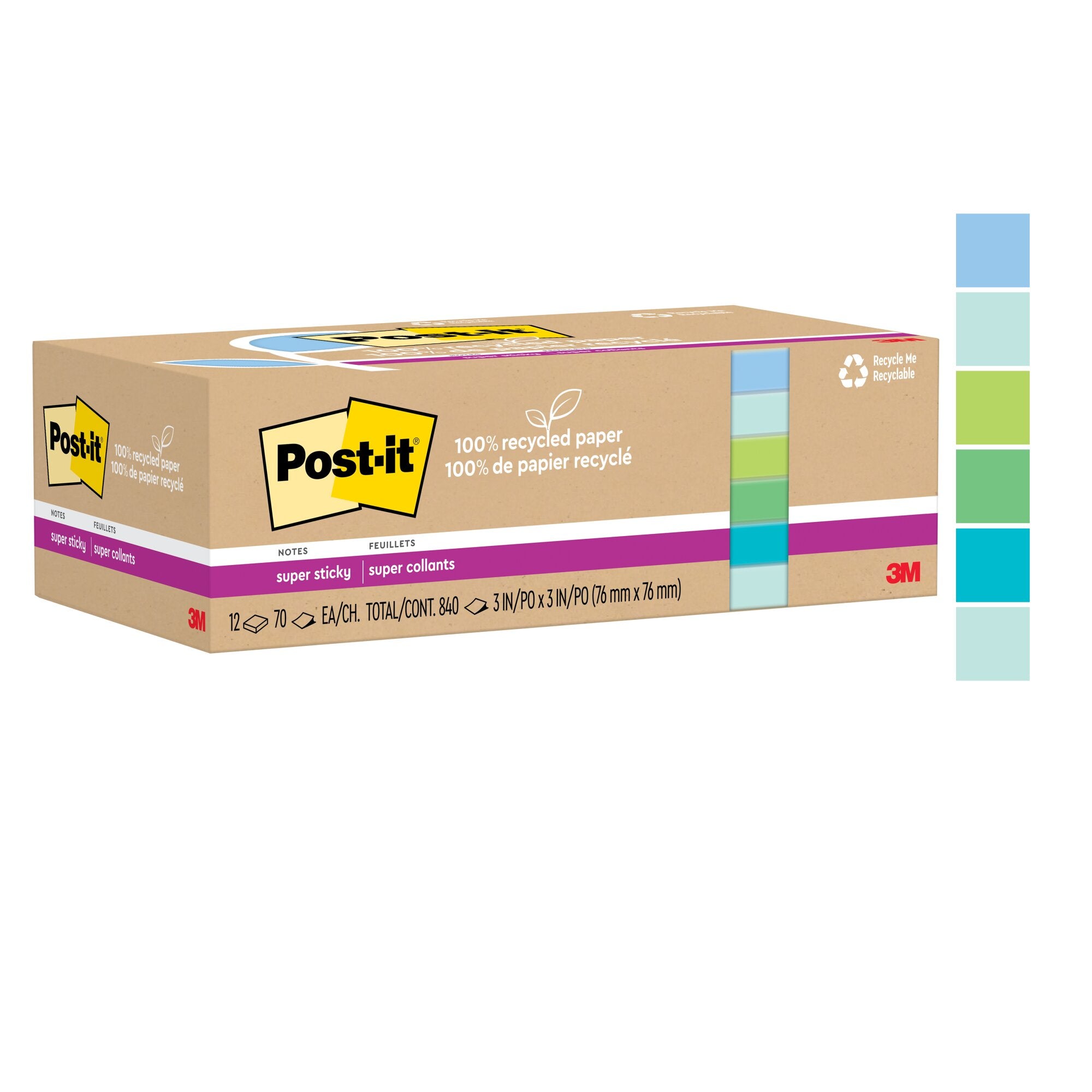 - Post-it® 100% Recycled Paper Super Sticky Notes and packaging are made with 100% recycled paper