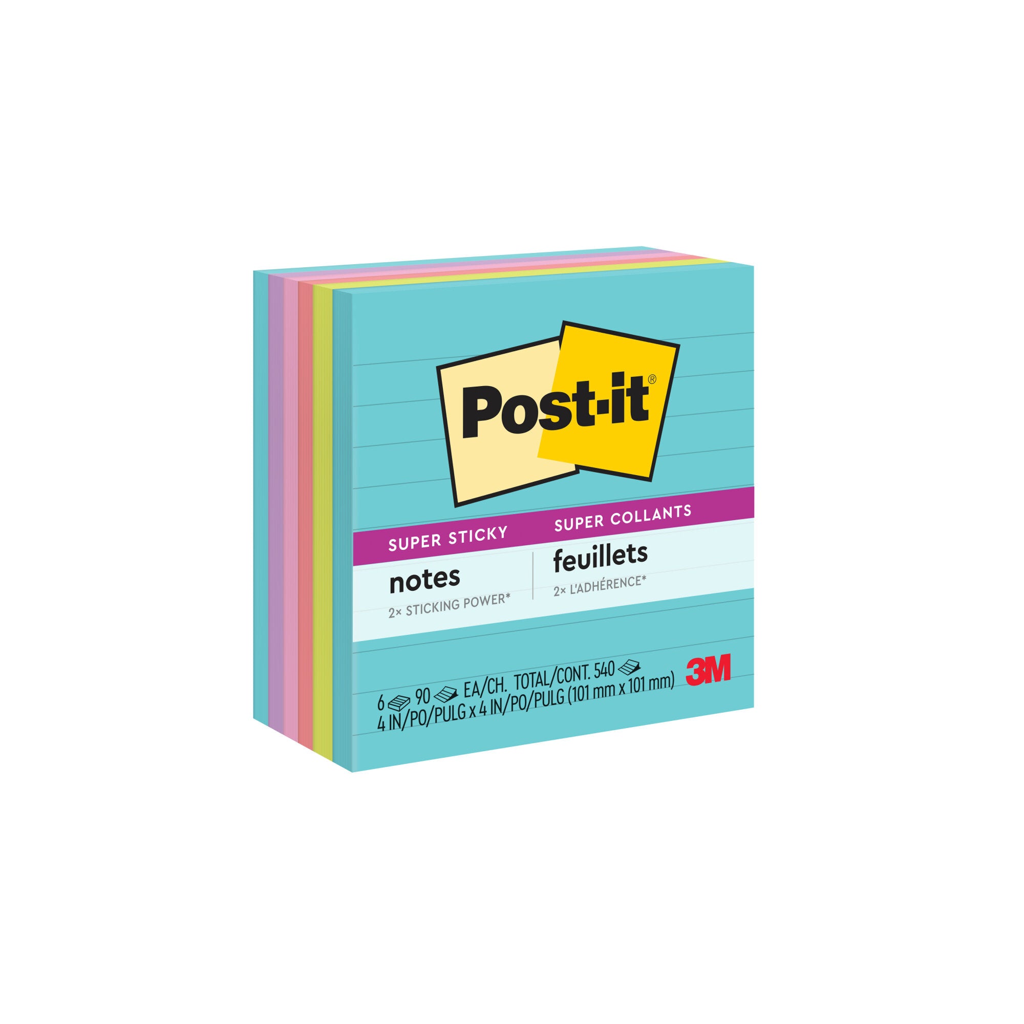 Post-it Super Sticky Notes have 2X the sticking power.Ideas are out of this world with the electric colors of the Post-it Super Sticky Notes Supernova Neons Collection. Whether jotting down your daily to-do's, brainstorming big ideas, studying or setting reminders, colors and ideas are always brighter together. These sticky notes feature 2X the sticking power. They also stick and re-stick - allowing you to move your notes with you throughout your day. They’re ideal for walls, doors, windows and other vertical surfaces, and like all Post-it Notes, they stick securely yet remove cleanly without damage. Keep your ideas across your notebooks, classroom books, calendars or other documents. No tape or tacks are needed with adhesive notes, saving you money and time on office products or school supplies. A great memo pad, these are ideal for using for notes or reminders to yourself or others. Post-it Super Sticky Notes are the perfect solution for shopping lists, reminders, notes on computer screens, time tracking, to-do lists, marking cables, color-coding documents, reminding kids to do chores, storyboarding, scratch paper and agile processing. Each notes sheet is approximately 4 in. x 4 in., with 90 sheets per pad and 6 sticky note pads per pack. These colorful sticky notes include colors from the Supernova Neons collection including aqua, lime, bright pink, coral pink and lilac. All Post-it Notes are sourced from certified, renewable and responsibly managed forests, and all Post-it Notes are recyclable, so you can recycle them when they are no longer needed.