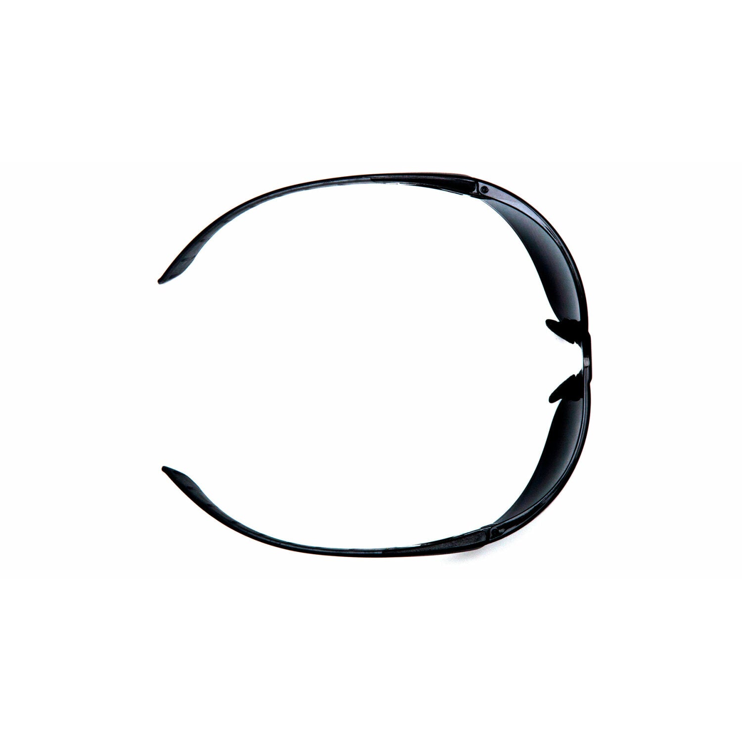 Pyramex-ENDEAVOR PLUS-T:BLACK-GRAY/L:CLEAR H2X-RET - Lightweight & durable protective eyewear. - Built-in brow guard shields against overhead particles. - Special dielectric hinge design contains no metal parts. - Curved, co-material temples allow for comfortable all day wear. - Scratch resistant polycarbonate lens provides 99% UVA/B/C protection. - 9.5 base one-piece wraparound lens provides excellent side protection. - Soft and adjustable nose piece provides a customized fit to prevent slipping. - Packaged in a clamshell.