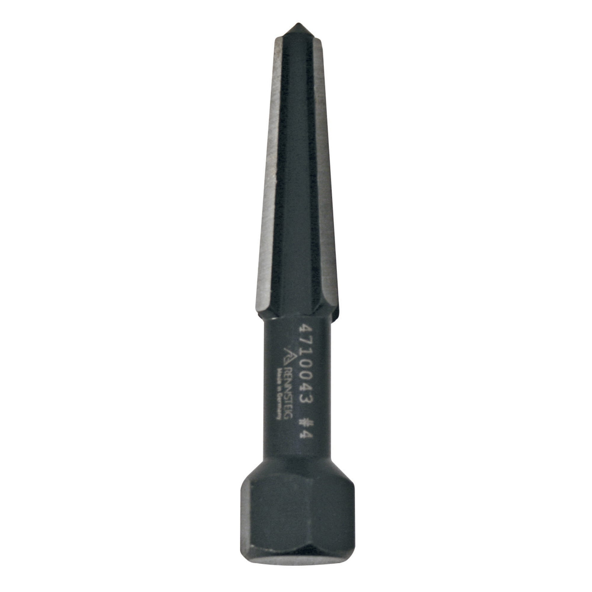 Non-slip and dual-edged engagement with the broken screw or bolt that needs to be removed. Unique hex head design works well with all standard hex sockets and extensions or box wrenches, eliminating the problem of rounded corners. Can be turned in clockwise or counterclockwise direction (for right-and left-hand threads). For unscrewing ruined screws and bolts without damaging threads. Tip has a built-in center punch pin to mark the center point. Drill a hole in the broken fastener with appropriate size drill bit. Tap extractor into hole and use a socket or wrench to loosen the fastener. Tapered flute design. Black-Oxide, cutting edges polished. Made of high-strength chrome vanadium steel.