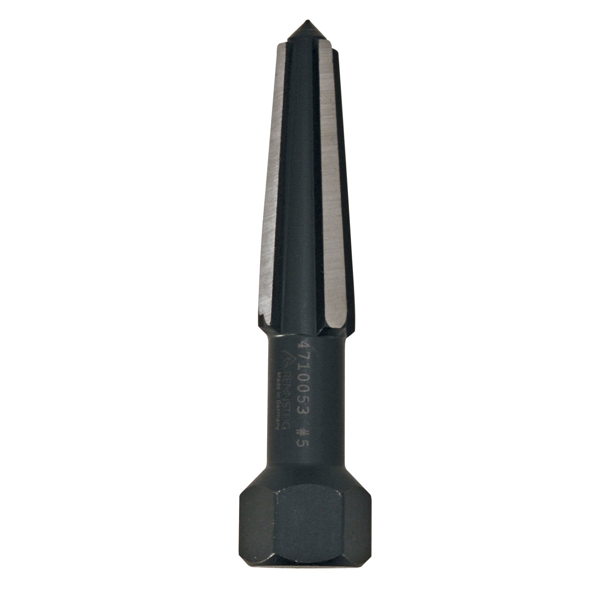 Non-slip and dual-edged engagement with the broken screw or bolt that needs to be removed. Unique hex head design works well with all standard hex sockets and extensions or box wrenches, eliminating the problem of rounded corners. Can be turned in clockwise or counterclockwise direction (for right-and left-hand threads). For unscrewing ruined screws and bolts without damaging threads. Tip has a built-in center punch pin to mark the center point. Drill a hole in the broken fastener with appropriate size drill bit. Tap extractor into hole and use a socket or wrench to loosen the fastener. Tapered flute design. Black-Oxide, cutting edges polished. Made of high-strength chrome vanadium steel.
