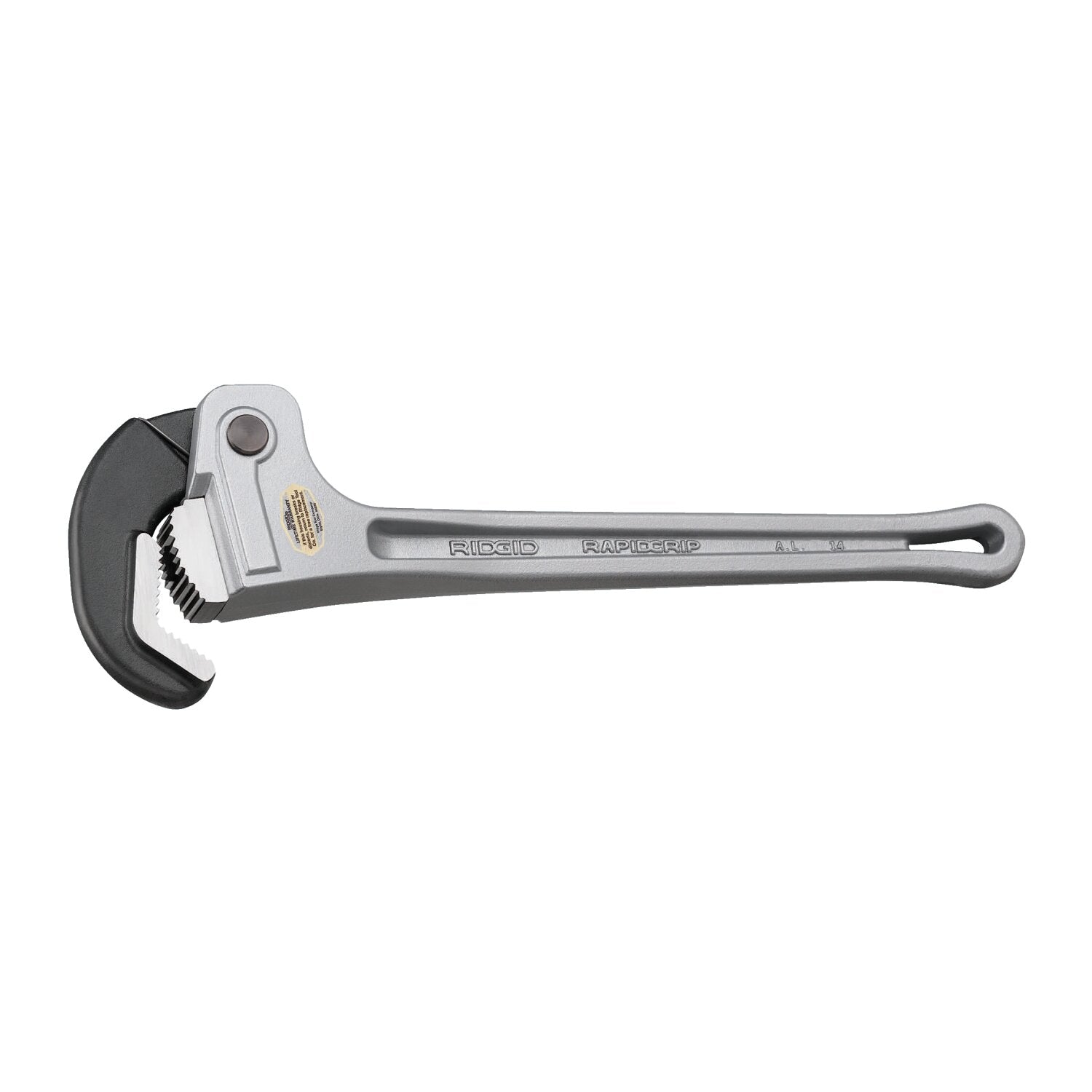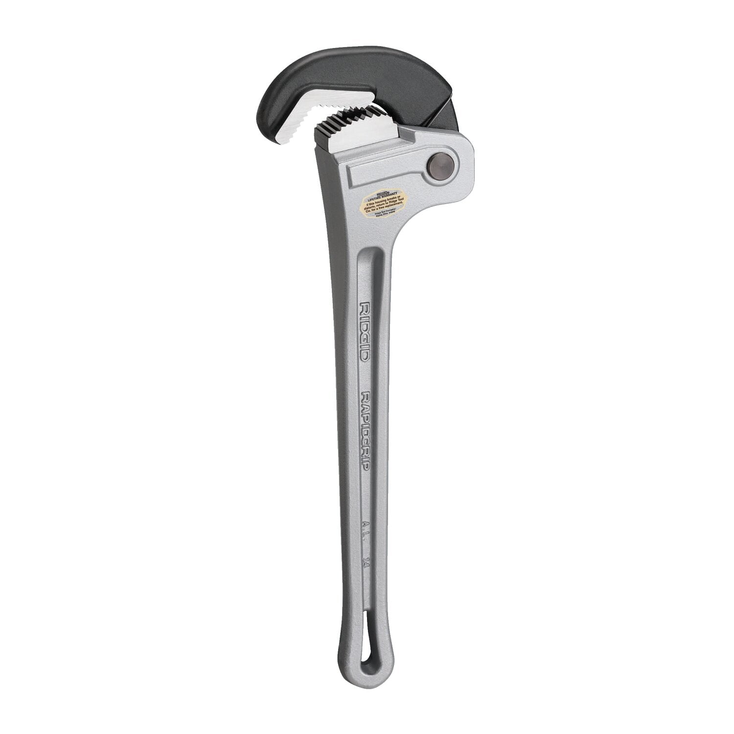 The RIDGID 14" Aluminum RapidGrip Wrench is engineered for efficiency, providing a quick one-handed operation while being 35% lighter than traditional cast iron models. Its innovative combination heel and hook jaw design ensures a strong grip on workpieces, making your tasks easier and faster. Weighing only 2.1 lbs, this tool is perfect for those seeking portability without compromising performance. Backed by a full lifetime warranty and manufactured in the US, it is an essential addition to any toolkit for plumbing and mechanical applications.