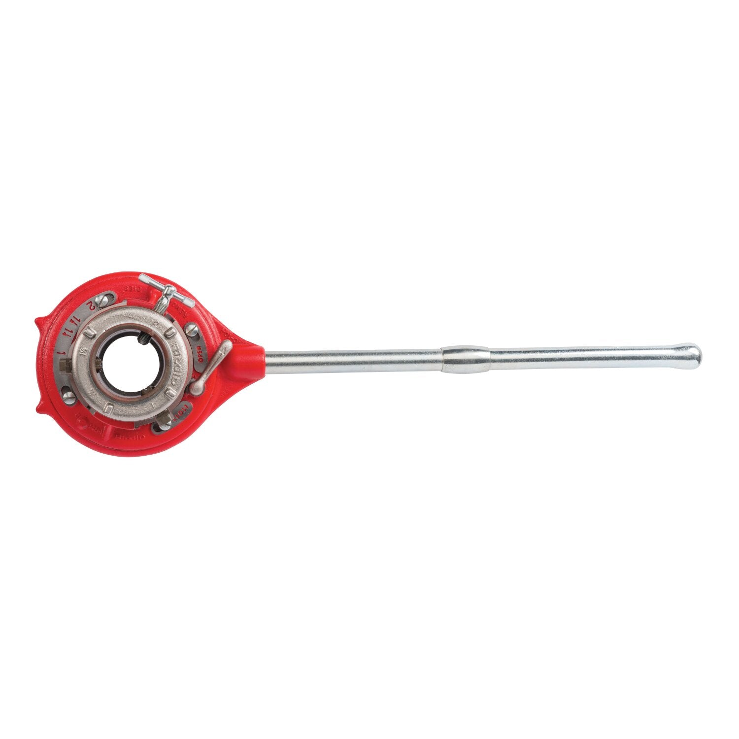 The RIDGID Model 65R-C Manual Receding Threader is a highly efficient tool designed to create precise NPT screw threads on 1 to 2-inch diameter pipes. It includes high-speed dies for various pipe sizes and operates with a manually controlled internal ratchet system. Featuring a true centering workholder, the device securely locks the pipe in place while the die head cuts threads, ensuring consistent results. Designed with a jam-proof drive pawl to prevent binding and backed by a full lifetime warranty, this threader is essential for professional and DIY plumbing tasks alike.