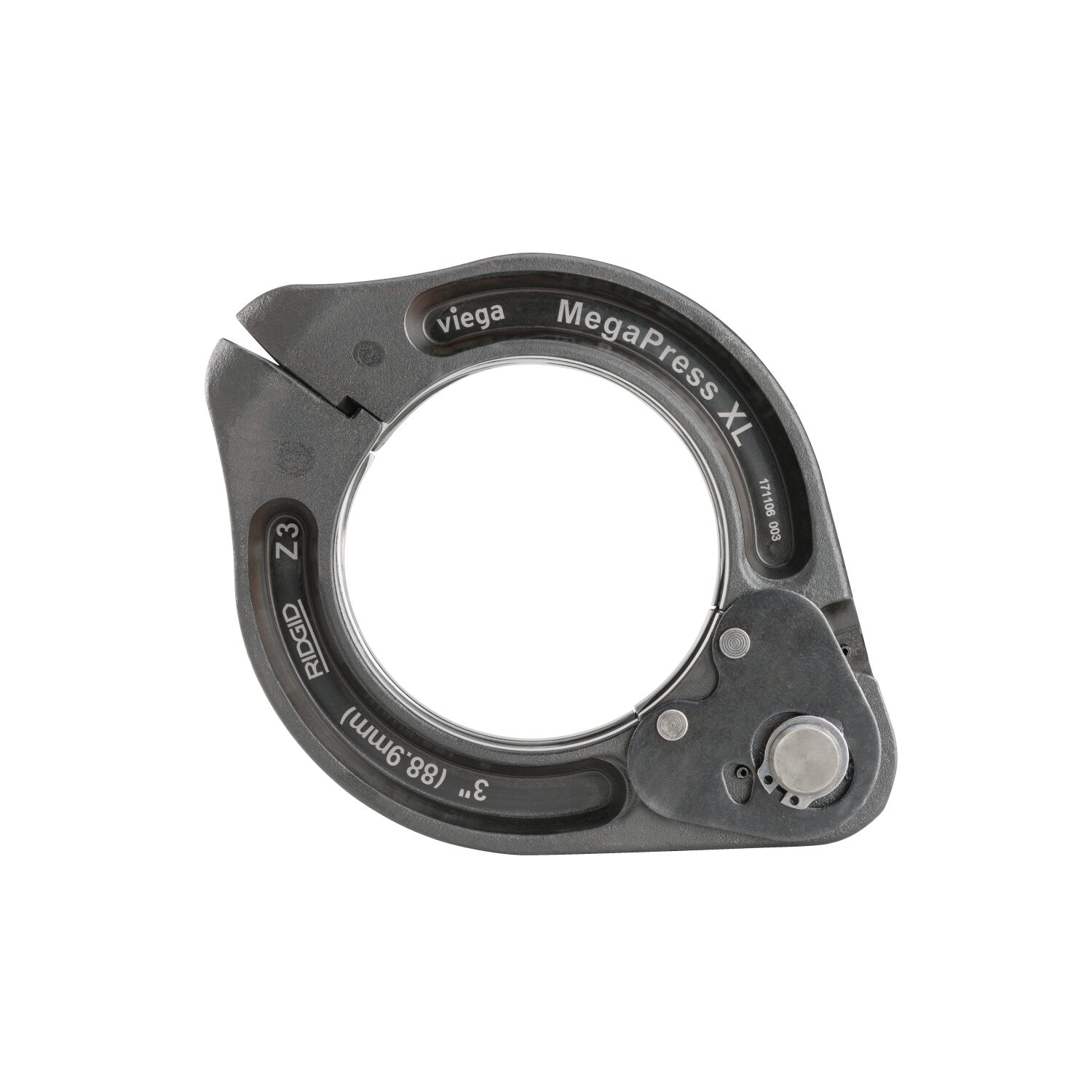 The RIDGID 3" MegaPress Ring is an essential addition for any professional plumbing toolkit, designed specifically for press connections on steel pipe up to 4" in diameter. It works seamlessly with RIDGID's Standard Press Tools, enhancing efficiency by making connections in under 25 seconds without the need for open flames or hot work permits. The innovative swivel actuator allows precise placement of the tool around the pipe, while its robust construction ensures reliability in demanding environments. Supported by RIDGID’s Full Lifetime Warranty, this component is a must-have for durable and efficient plumbing solutions.