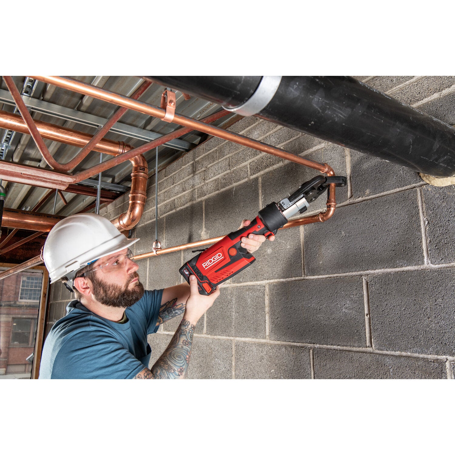 The RIDGID RP 351 Press Tool is a top-tier pressing solution designed for optimal durability and efficiency. Featuring a robust brushless motor, it can perform over 100,000 press cycles without the need for scheduled maintenance, making it incredibly reliable. This tool boasts an endless 360° swivel head for reaching tight spaces and is equipped with an advanced LED interface for easy operation in low-light conditions. Capable of pressing PEX up to 2", copper and stainless steel up to 4", and carbon steel with a booster, it's the go-to choice for all plumbing professionals looking to maximize productivity and versatility.