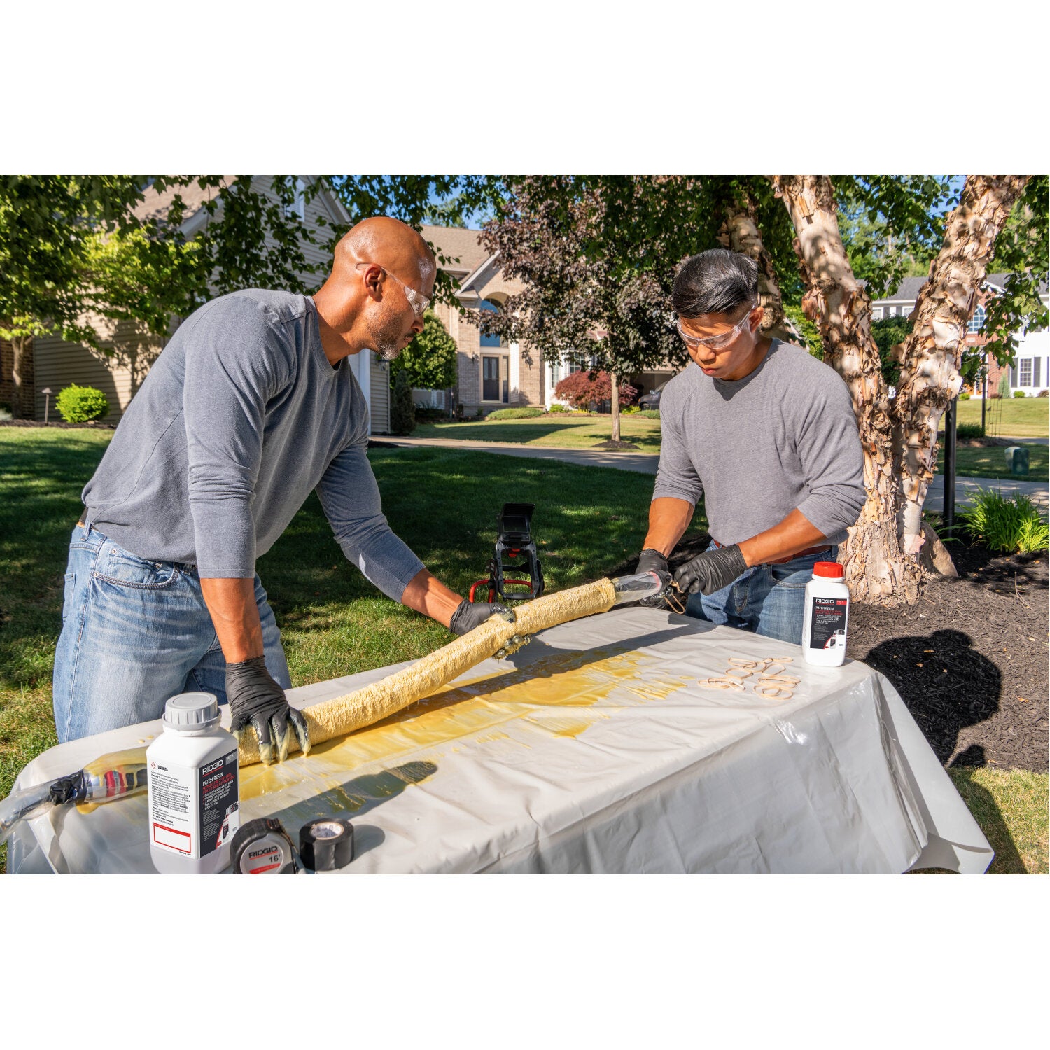 The RIDGID Pipe Patch Kit is expertly designed for efficient pipe repair, accommodating 4-6 inch pipes with a durable 6-foot fiberglass liner. Each kit contains all necessary components for a seamless application, including a 3-foot patch, gloves, patch tape, and elastic bands, ensuring minimal hassle on-site. Its two-part silicate resins are conveniently pre-measured, offering up to 15 minutes of working time while curing in as little as 90 minutes. With a life expectancy of up to 50 years under normal conditions, this solution is perfect for trenchless repairs, significantly reducing the impact on landscaping and business operations.