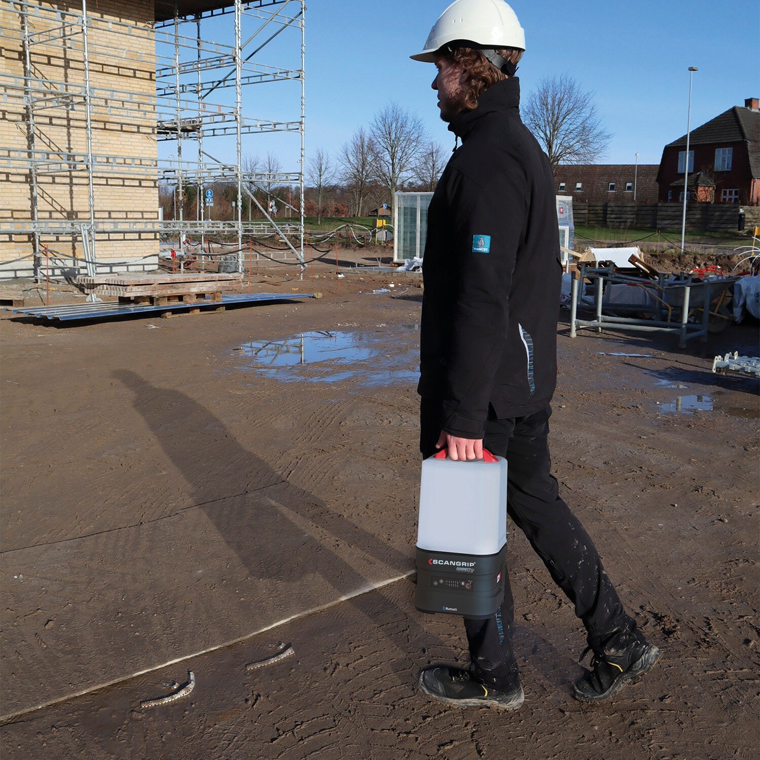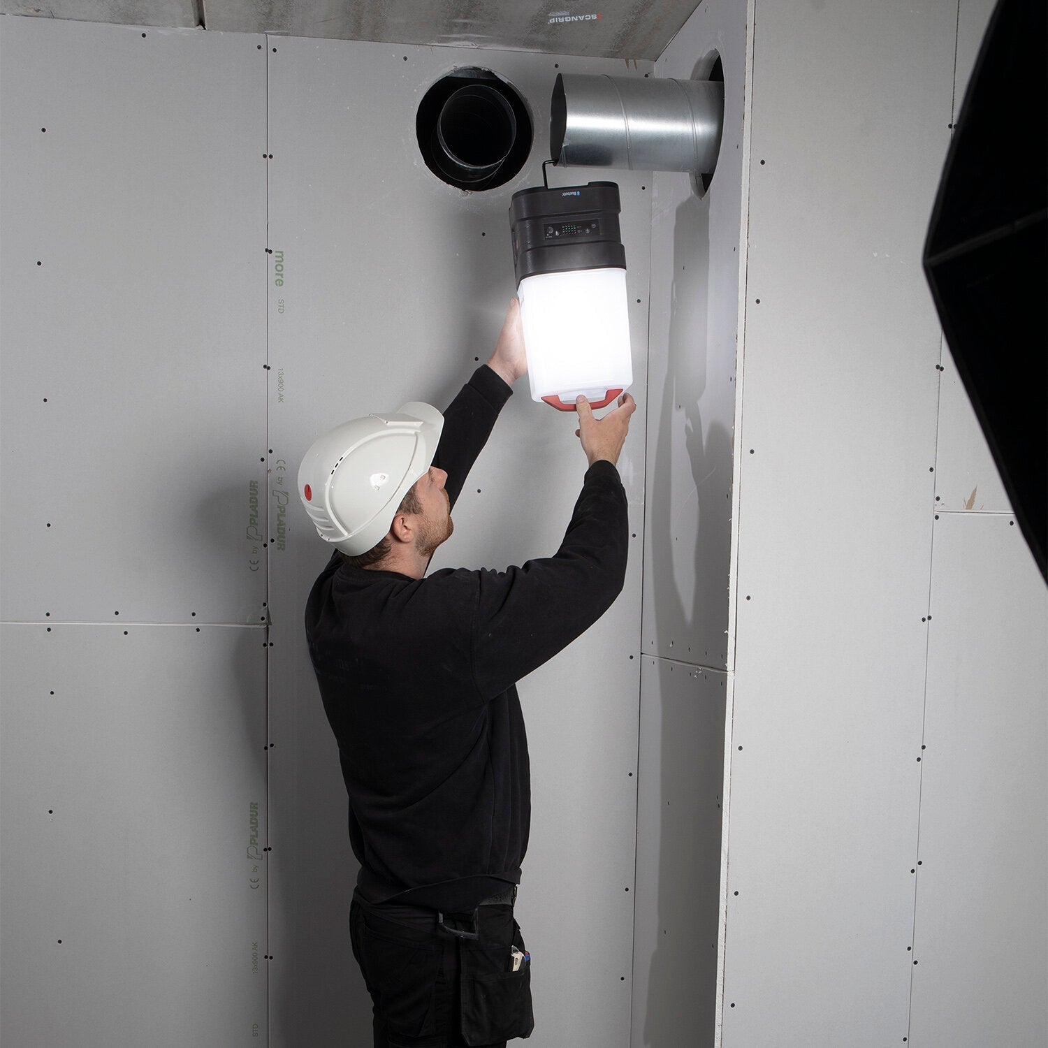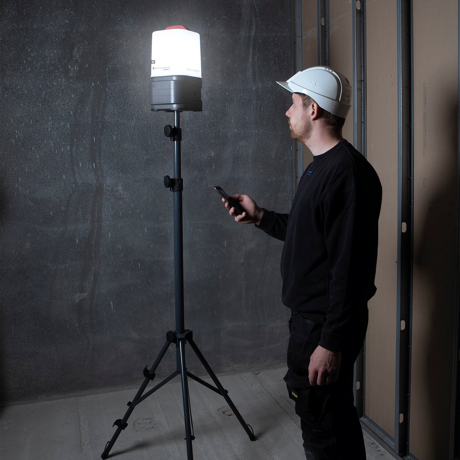 AREA 10 CONNECT provides a diffused and uniform light up to 10,000 lumen which is ideal for the professional user who requires powerful and efficient illumination of the entire work area carrying out any kind of repair, paint or construction work. The compact design with a carrying handle makes it extremely handy and easy to move around. Change between 360° and 180° illumination according to the work task. The built-in dimmer function enables you to adjust the light output into five different levels. As a unique feature, AREA 10 CONNECT is compatible with METABO / CAS battery system 18 V and all other 18 V/20 V battery packs from leading power tool brands by using the SCANGRIP CONNECTOR. In addition, the SCANGRIP POWER SUPPLY can be used for direct power providing unlimited availability to light. AREA 10 CONNECT is a battery powered work light with an internal back-up battery securing 50 extra minutes at 1000 lumen. With the integrated BLUETOOTH light control it is possible to turn on/off the work light and adjust the light output through a mobile device, saving you time from manual operation and increases work efficiency on a daily basis. Due to the compact and low weight design, AREA 10 CONNECT is portable and easy to carry around. It is also supplied with a hook for flexible positioning and can be mounted directly on the SCANGRIP TRIPOD. Dust and waterproof, IP65, and supplied with a built-in power bank with USB outlet to charge mobile devices.