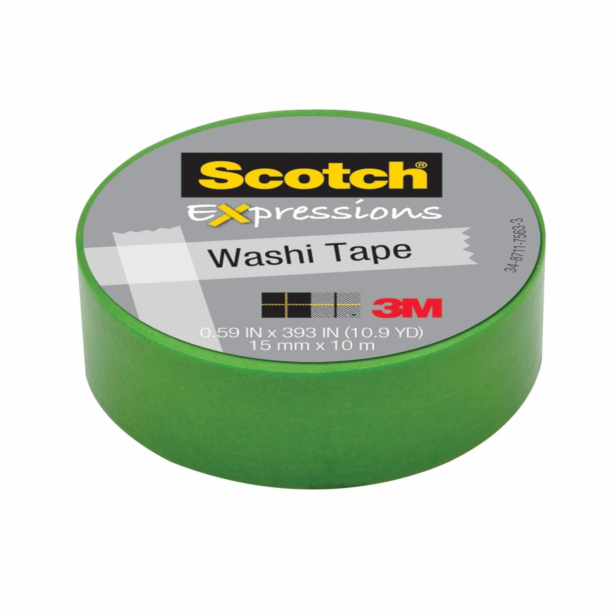Scotch® Expressions Washi Tape C314-GRN, .59 in x 393 in (15 mm x 10 m)Green