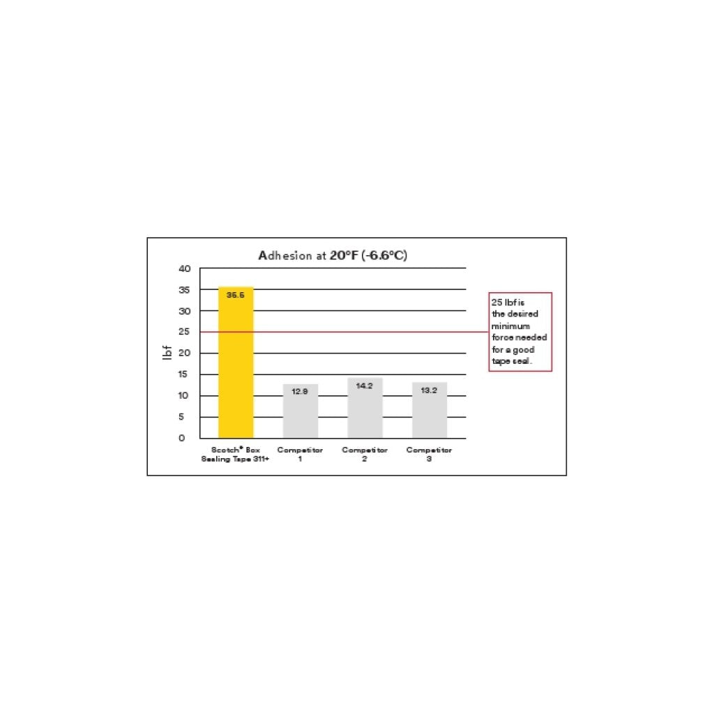 Scotch® High Tack Box Sealing Tape 311+ is engineered to provide excellent adhesion and durability necessary for boxes that are commonly exposed to shipping hazards including cold temperatures. The backing easily conforms around edges and on rough surfaces to provide a lasting hold. With its quick adhesion and durable backing, this sealing tape is built with the features necessary to maintain high performance in extreme environments. Ship confidently with the instant stick and secure hold of Scotch® High Tack Box Sealing Tape 311+.