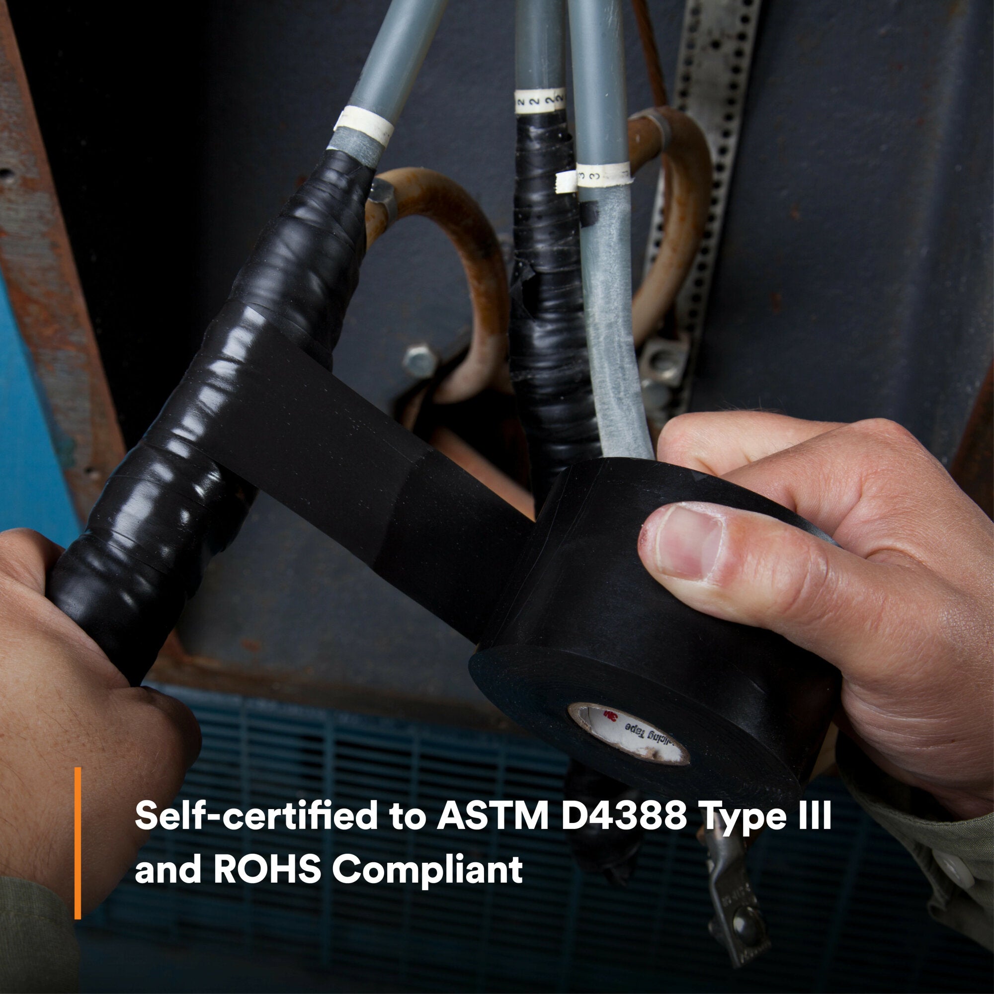 Scotch Tape 130C is a linerless 30 mil thick, premium grade, rubber splicing tape used for splicing and terminating cables and wires. It withstands temperatures up to 194 F (90 C) with emergency overload up to 266 F (130 C). The tape has excellent electrical and mechanical properties to provide moisture seal protection.Scotch® Tape 130C is a highly conformable tape that provides electrical and mechanical protection with the combination of an aggressive rubber resin adhesive and a self fusing, ethylene propylene backing. The tape provides primary insulation for solid, dielectric insulated cables rated through 69 kV. This tape is designed for low and high voltage, bus bar insulation, end sealing of cables and jacket repair applications. It has outstanding mechanical and electrical properties that offer moisture seal and void free buildups. ASTM Approved and RoHS 2011/65/EU Compliant.