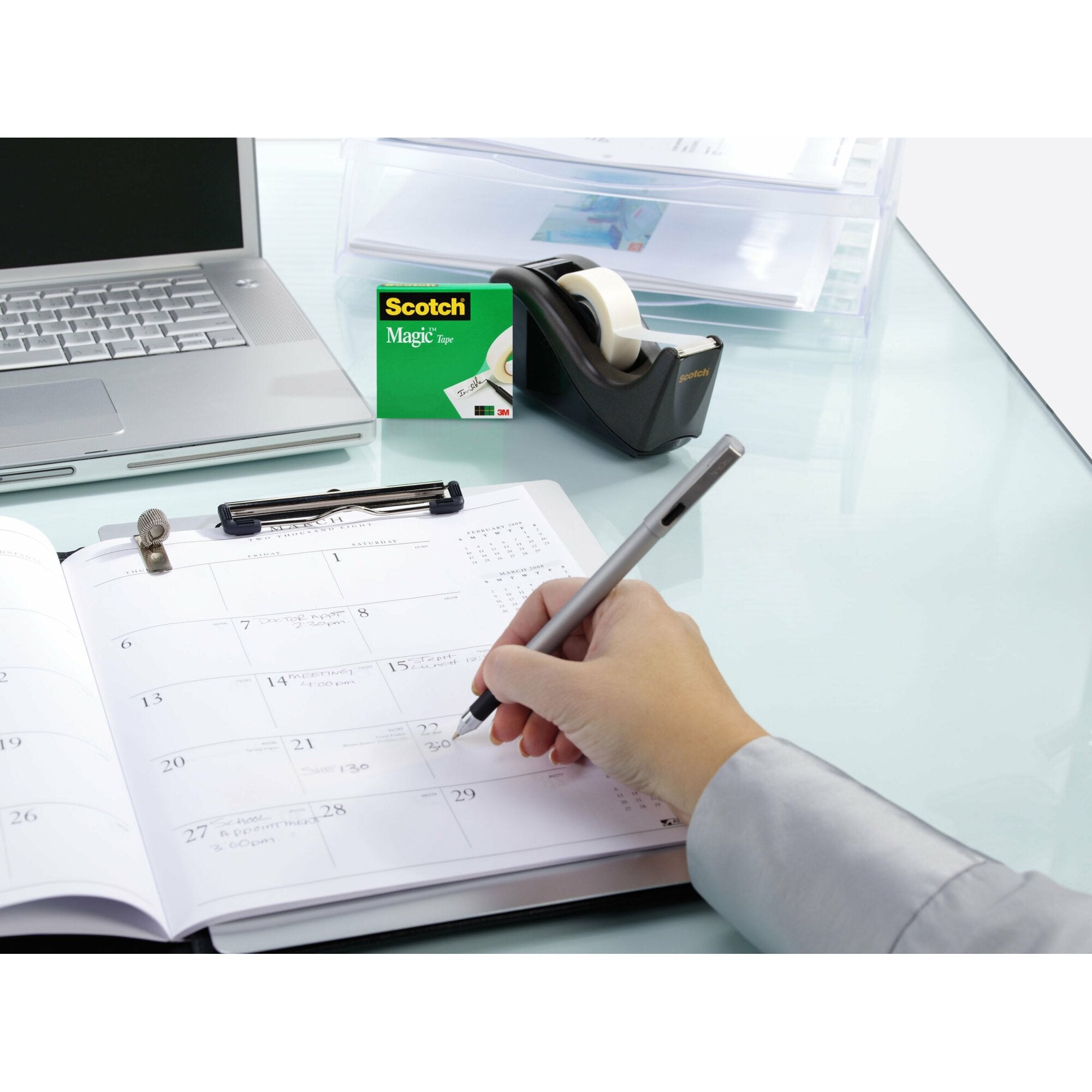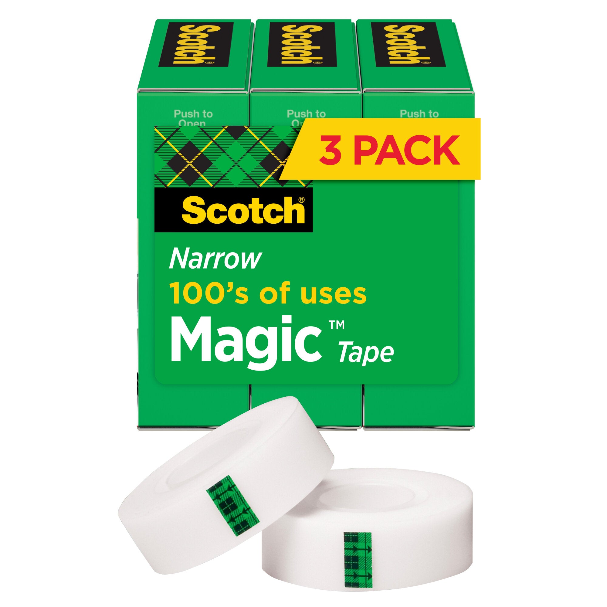 Scotch Magic Tape is the original matte finish, invisible tape. It is the preferred tape for offices, home offices, and schools. Write on it with pen, pencil or marker.Scotch Magic Tape works as hard as you do to fix all the little imperfections at home, school and the office. The Scotch Brand's famous matte finish invisible tape uses unique 3M adhesive technology to bond tightly with paper and disappear without a trace. Write on it with pencil, pen or marker every word is loud and clear. Scotch Magic Tape: Always ready for big ideas and everyday mends.