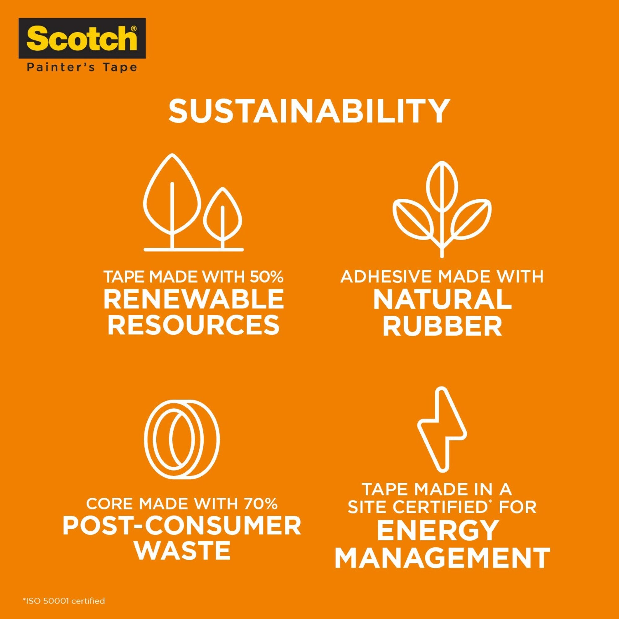 • Sustainability: Made From 50% Renewable Resources; Adhesive Made With Natural Rubber; Tape Made In A Site Certified For Energy Management (Iso 50001 Certified); Core Made With 70% Post-Consumer Waste