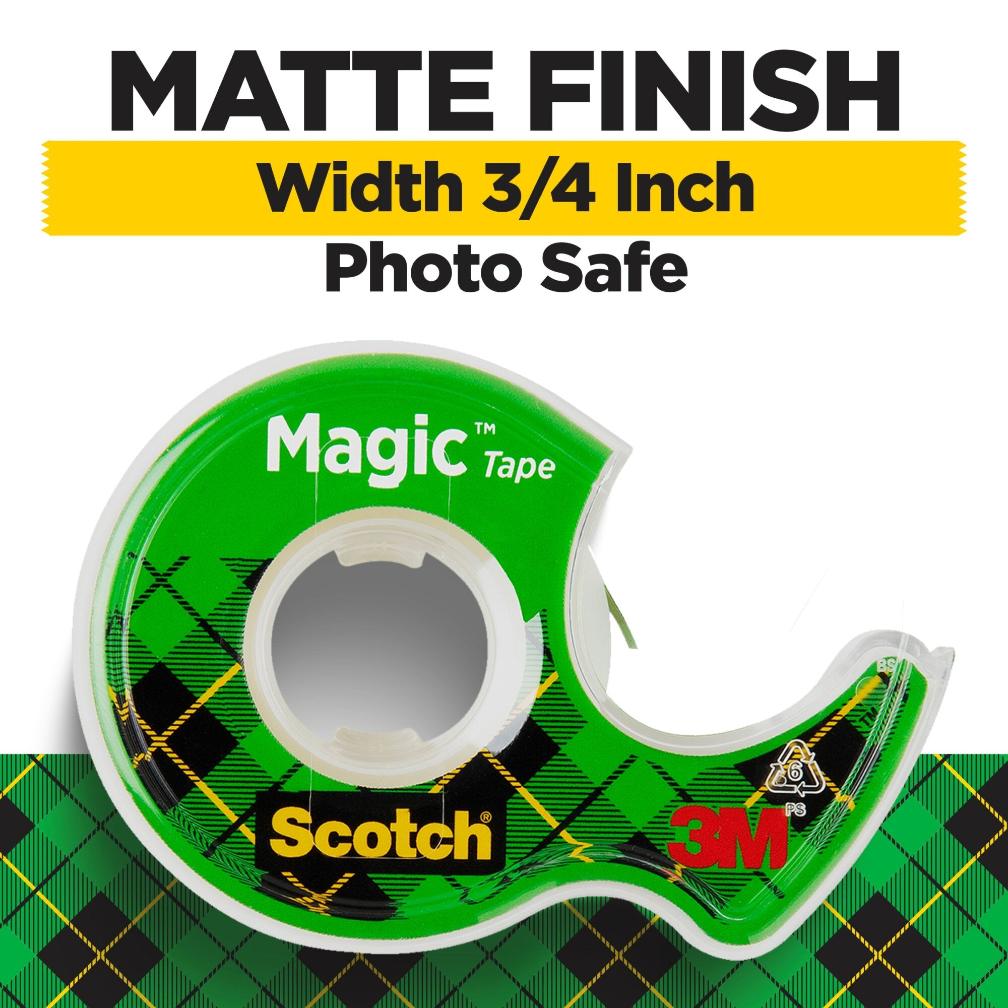 The original matte finish, invisible tape, Scotch Magic Tape is a favorite for the home, office and school work. Available in an easy-to-use, refillable dispenser. It is great for packaging, wrapping, sealing, and mending.There's nothing more important than mending original documents like birth certificates, final essays, and special photos. One original deserves another. Scotch® Magic™ Tape is the original invisible matte finish tape preferred by homes, schools and home offices. Why? Because it works like magic: It's invisible! Gives you a strong, secure, permanent seal using trusted 3M adhesive technology. And with our easy to use Scotch® Tape dispenser (included), Scotch® Magic™ Tape rolls out smoothly, cuts evenly with no time, energy or tape wasted. Magically mend the many rips and tears of life securely, permanently, and invisibly.