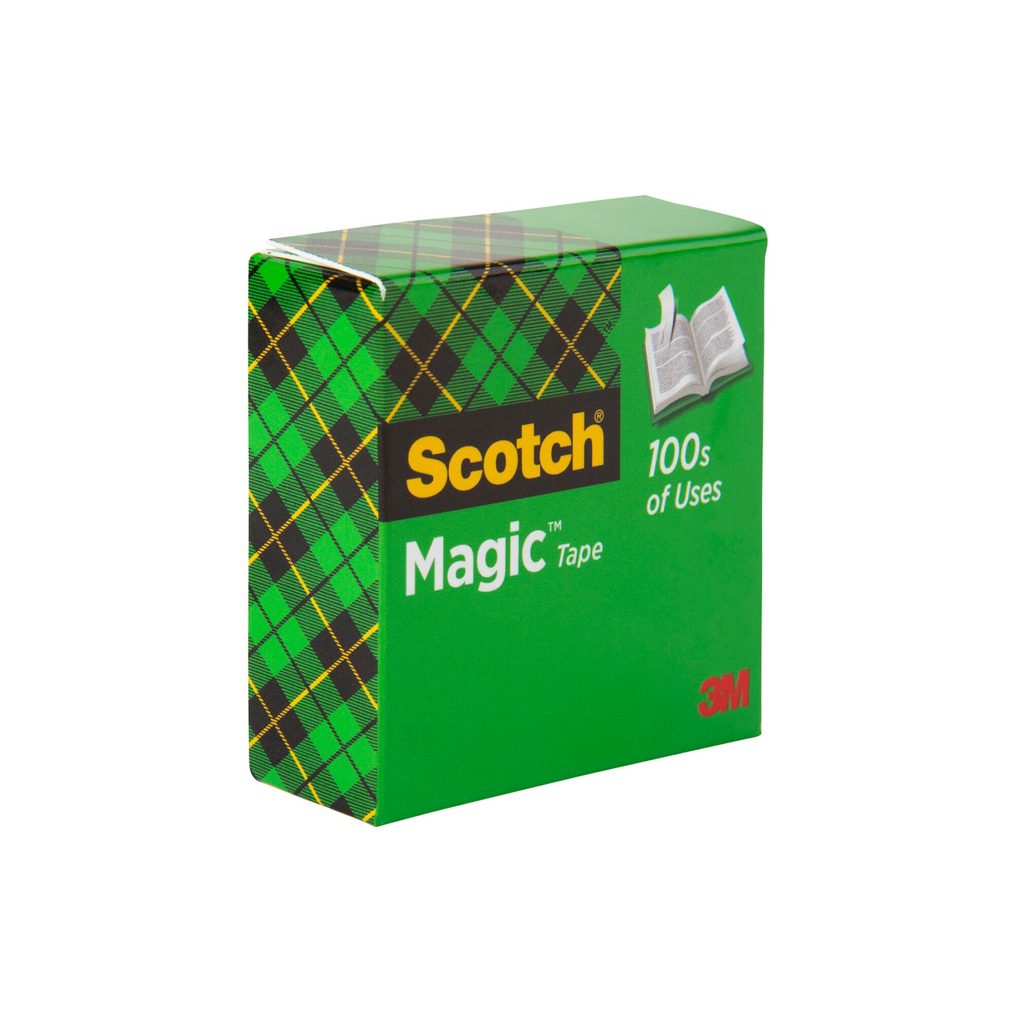 Scotch Magic Tape is the original matte finish, invisible tape. It is the preferred tape for offices, home offices, and schools. Write on it with pen, pencil or marker.Scotch® Magic™ Tape works as hard as you do to fix all the little imperfections at home, school and the office. The Scotch® Brand's famous matte finish invisible tape uses unique 3M adhesive technology to bond tightly with paper and disappear without a trace. Write on it with pencil, pen or marker every word is loud and clear. Scotch® Magic™ Tape: Always ready for big ideas and everyday mends.