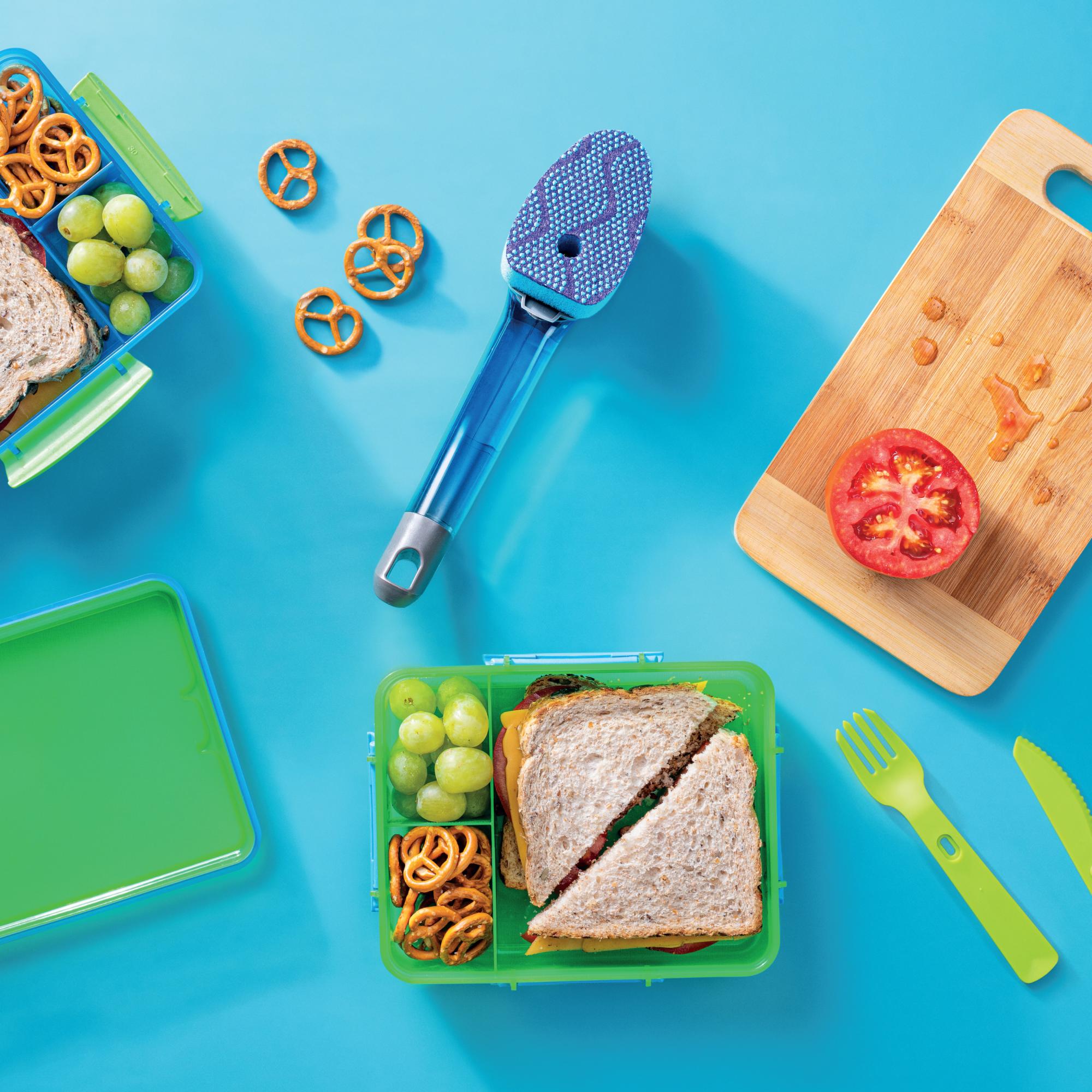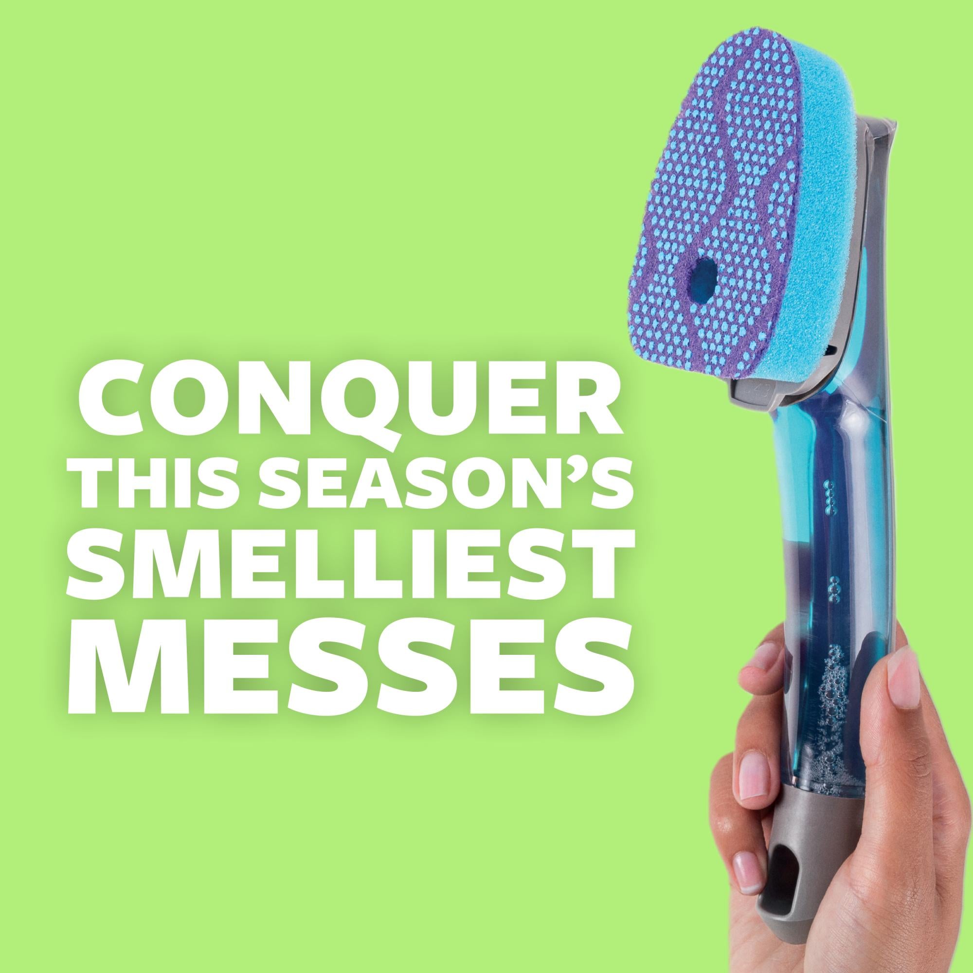 • Fill it up with your favorite dish soap and effortlessly wipe away grease and grime