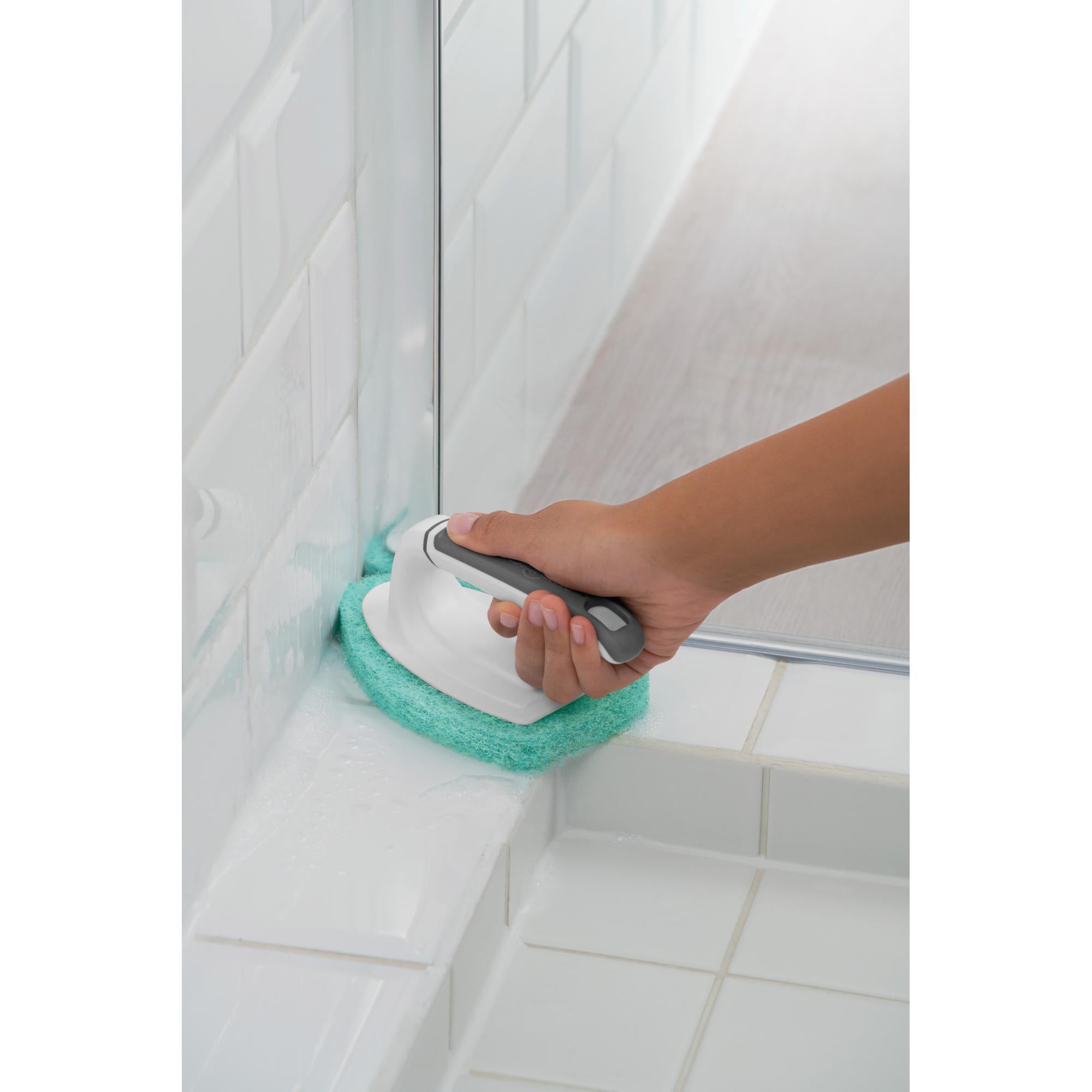 - Powers through soap scum, hard water, limescale, and other shower grime without scratching