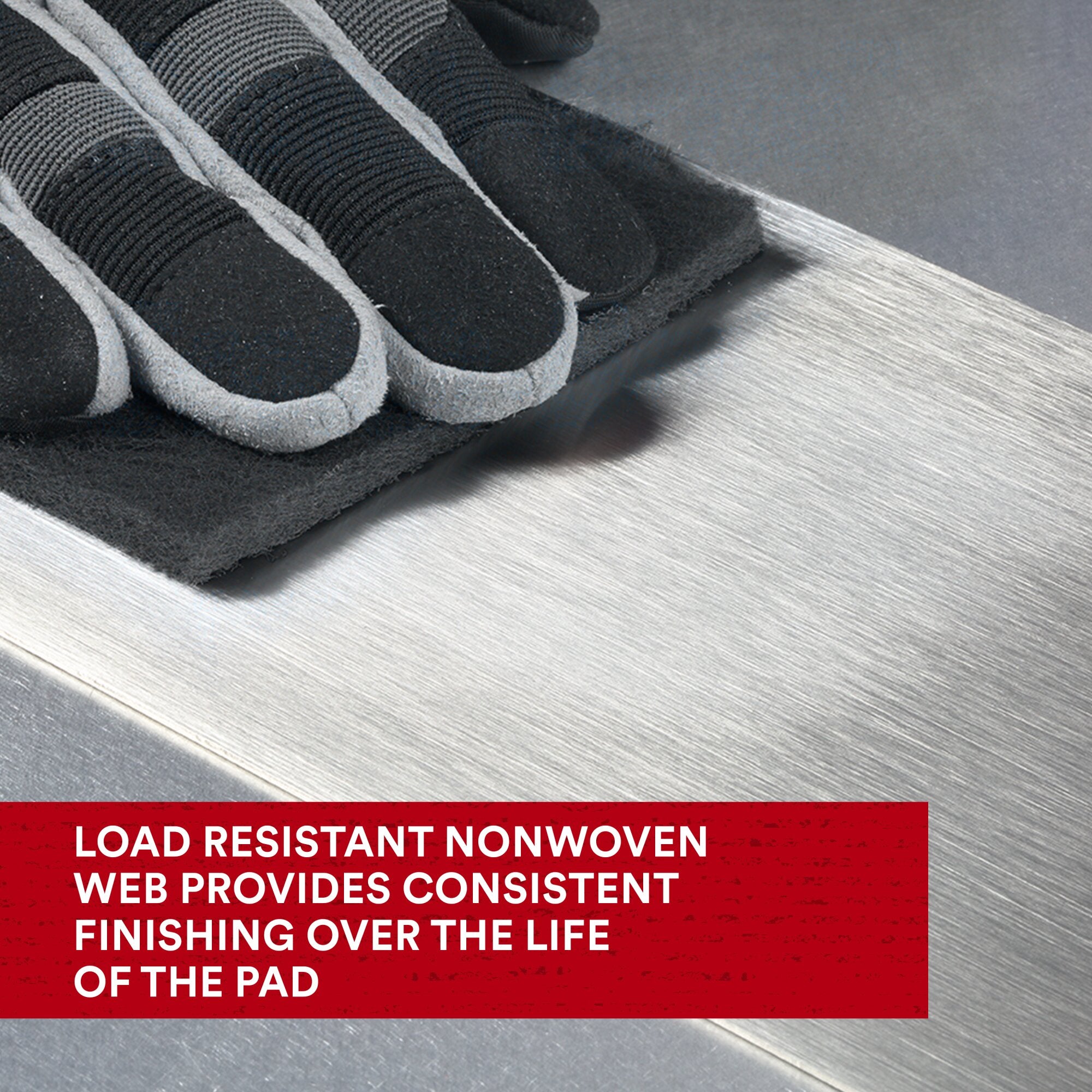 - Load and heat resistant non-woven web provides consistent finishing over the life of the pad