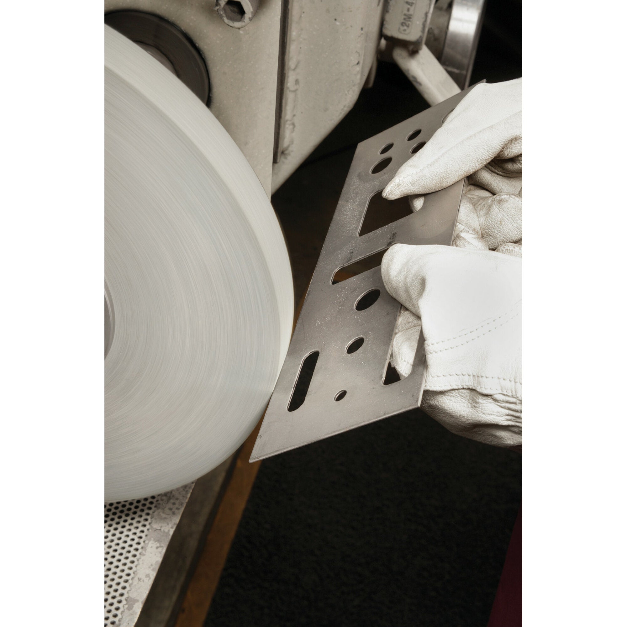 Our hard density Scotch-Brite™ EXL PRO Deburring Wheel quickly deburrs stamped or laser cut parts, finishes after belt sanding, and polishes all types of metals, composites and glass. It not only achieves a super fast cut, but leaves a smooth, clean surface without smearing, reducing your need for additional cleanup and preparation. Convolute construction and clean, uniform wear keep the wheel running smoothly and produce a professional finish with less pressure, minimizing fatigue. Our Scotch-Brite PRO material runs cool and keeps fresh abrasives continuously exposed, making it a superior choice on heat sensitive substrates. The toughness of the wheel extends its service life to keep your productivity higher and costs lower.