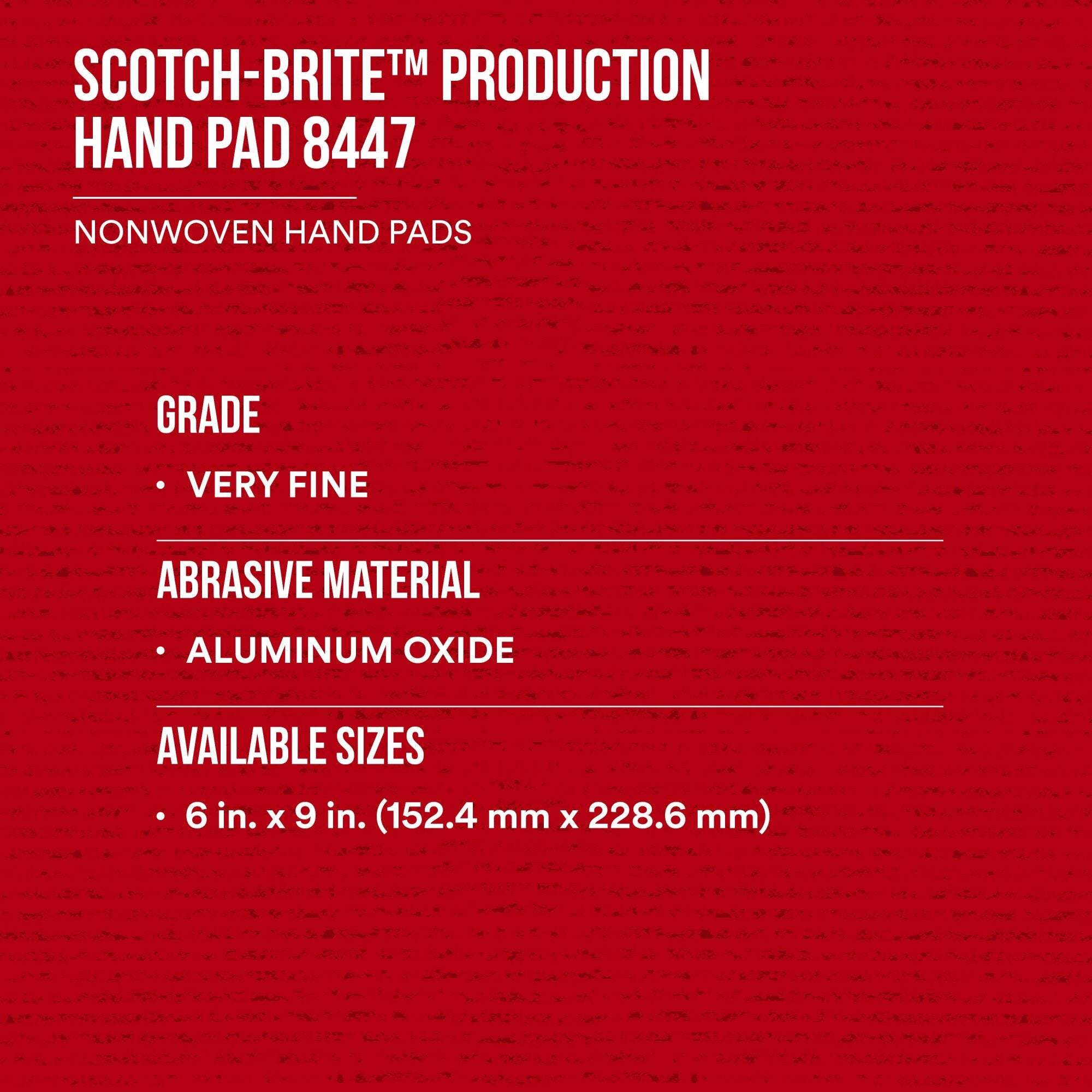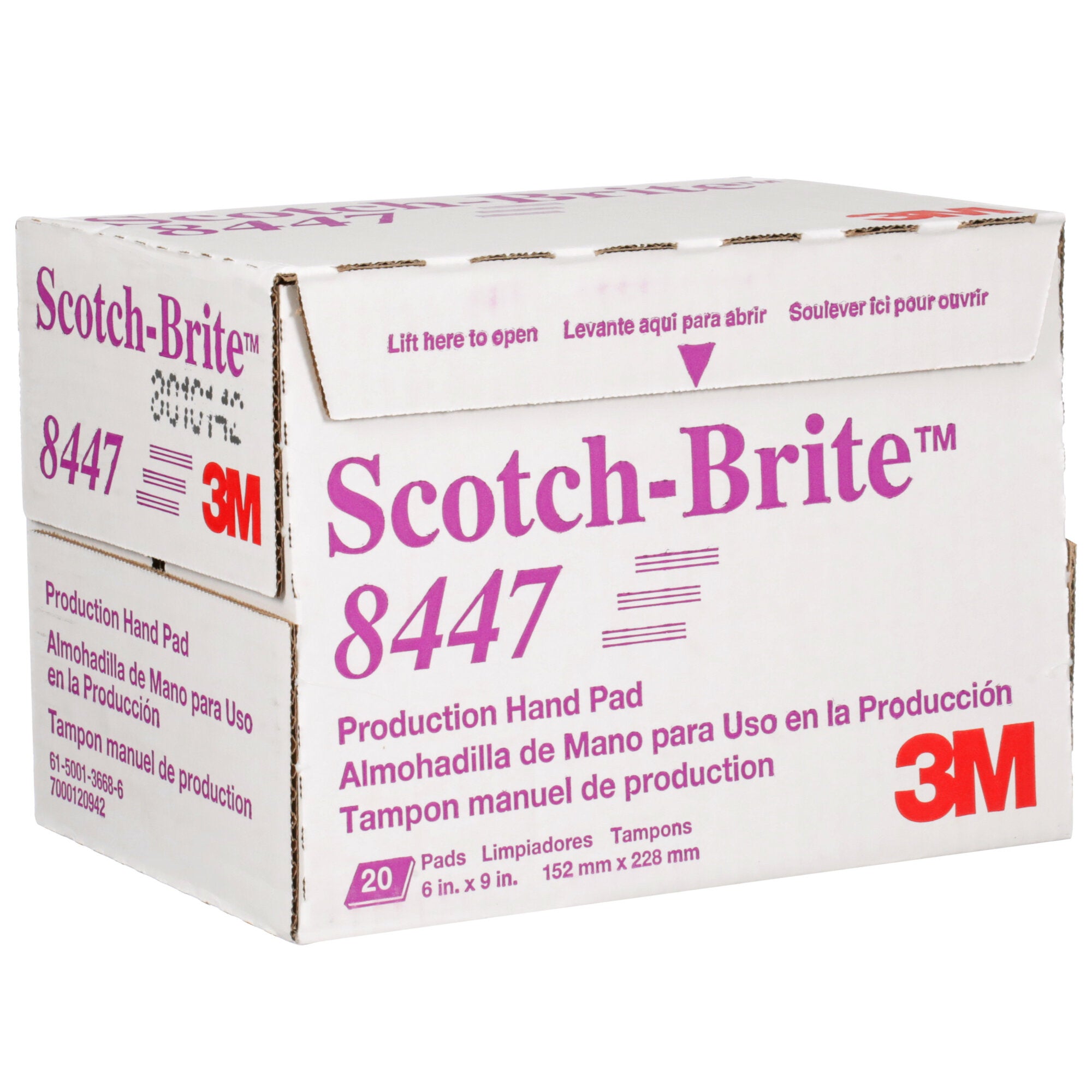 Scotch-Brite Hand Pads deliver a fast, consistent scuff for everyday surface preparation. The Scotch-Brite Production Hand Pad 8447 is ideal for cleaning parts and scuffing prior to staining and painting.