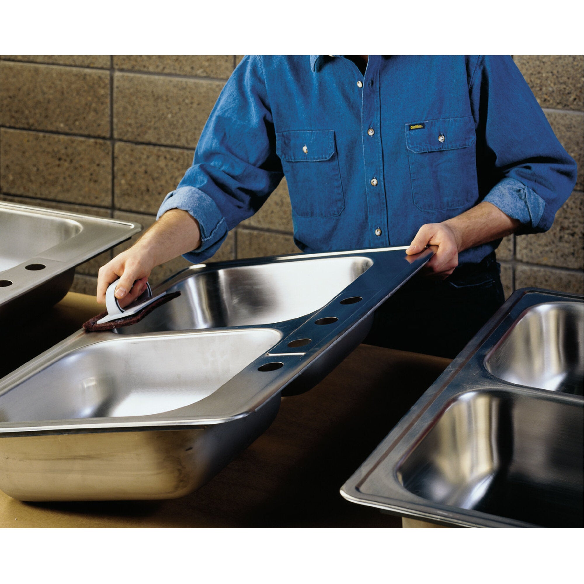 We designed the Scotch-Brite™ Production Hand Pad 8447 with precision web and aluminum oxide mineral to offer our most uniform finish. It's an excellent choice for projects that require pre-paint scuffing, finishing, contour finishing, blending and cleaning, because, like steel wool, it provides an aggressive cut and a clean finish without the rusting or splintering. The pad conforms to irregular surface areas and gets into corners without sacrificing performance. Its versatility means it may be used in a way that's best suited to operator needs. Use our Production Hand Pad by hand, with a hand pad block or an in-line sander.