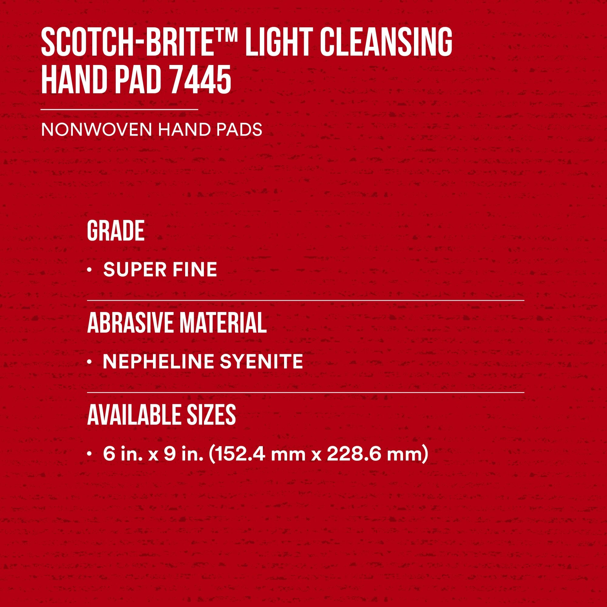 The Scotch-Brite Light Cleansing Hand Pad 7445 is an excellent choice when you require a mild abrasive. The conformable web and fine mineral are the perfect pairing when you need a gentle touch for light cleaning or a fine finish.Ideal for Many Surfaces