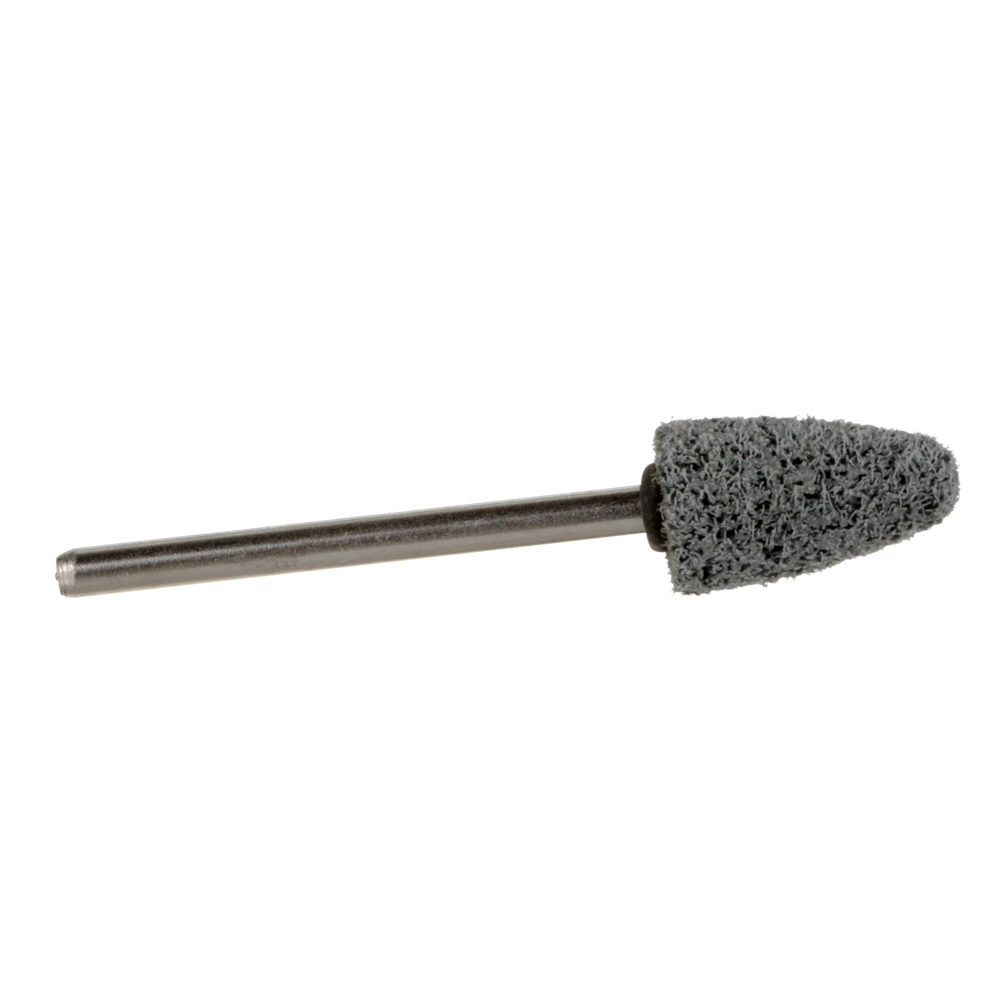 Scotch-Brite EXL Unitized Mounted Point lightly deburrs, blends and finishes metal and plastic parts. The versatile assortment of shapes and sizes make the EXL Unitized Mounted Point a good match for small parts with hard-to-reach areas.Our Scotch-Brite™ EXL Unitized Mounted Point comes in a variety of ANSI (American National Standards Institute) shapes and sizes, ideal for light blending and deburring of smaller workpieces. The abrasive point is securely fastened to a metal spindle, so it can be used with a die grinder. The variety of abrasive sizes helps operators effectively finish various parts.