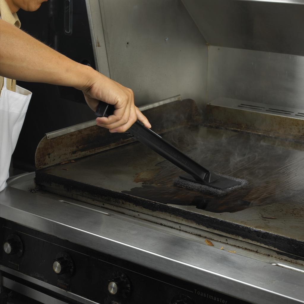 - Polishes griddle surface while it cleans it
