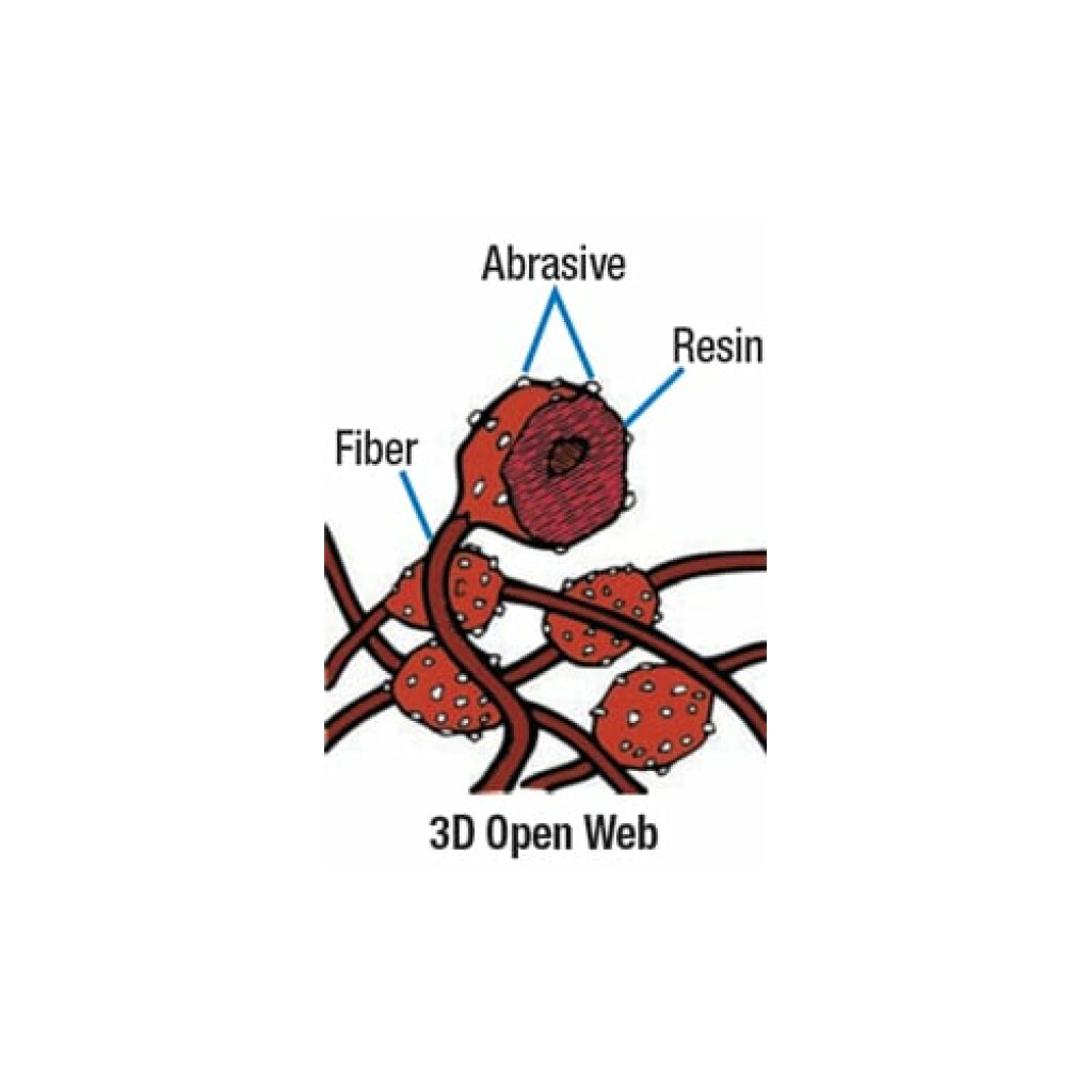 Non-woven technology makes Scotch-Brite™ industrial abrasives unique. A combination of fiber strands, resin, and abrasive mineral forms a thick, open web. The spring-like nature of the fibers responds to contours and effectively removes unwanted burrs, soils, and contaminants while maintaining the geometry of the workpiece, which in turn reduces rework and boosts productivity. Gaps in the web allow swarf to escape, so debris does not clog the mineral.