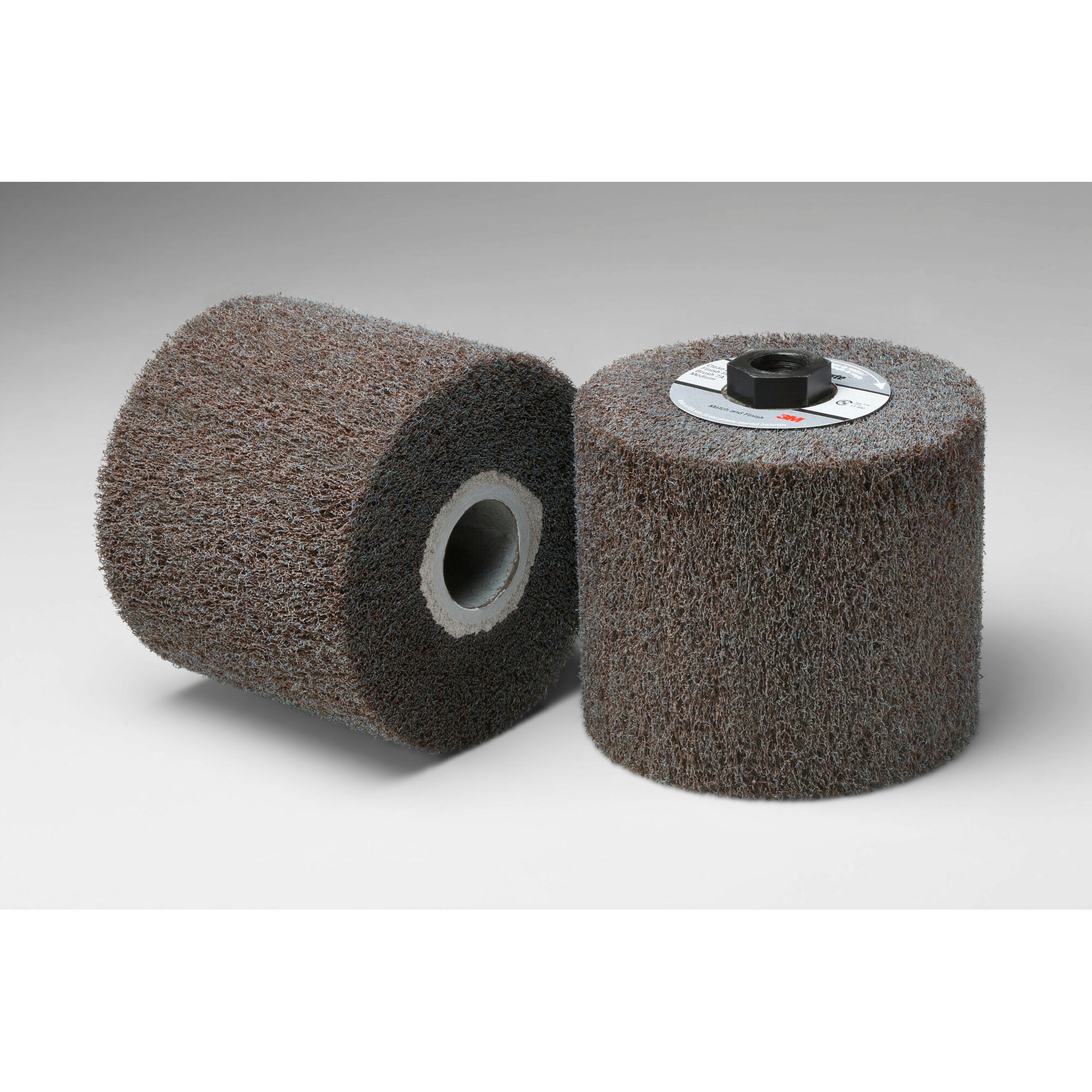 Scotch-Brite™ Match and Finish High Strength Flap Brushes combine aluminum oxide mineral and our non-woven nylon fibers with resin. Sharp-cutting aluminum oxide mineral leaves a fine finish, while the spongy, open web responds to surface irregularities and maintains part geometry. This brush is one of the most durable among all the Scotch-Brite™ flap brushes, so it’s good for graining stainless steel, blending handling marks and imperfections, cleaning around welds and light deburring.