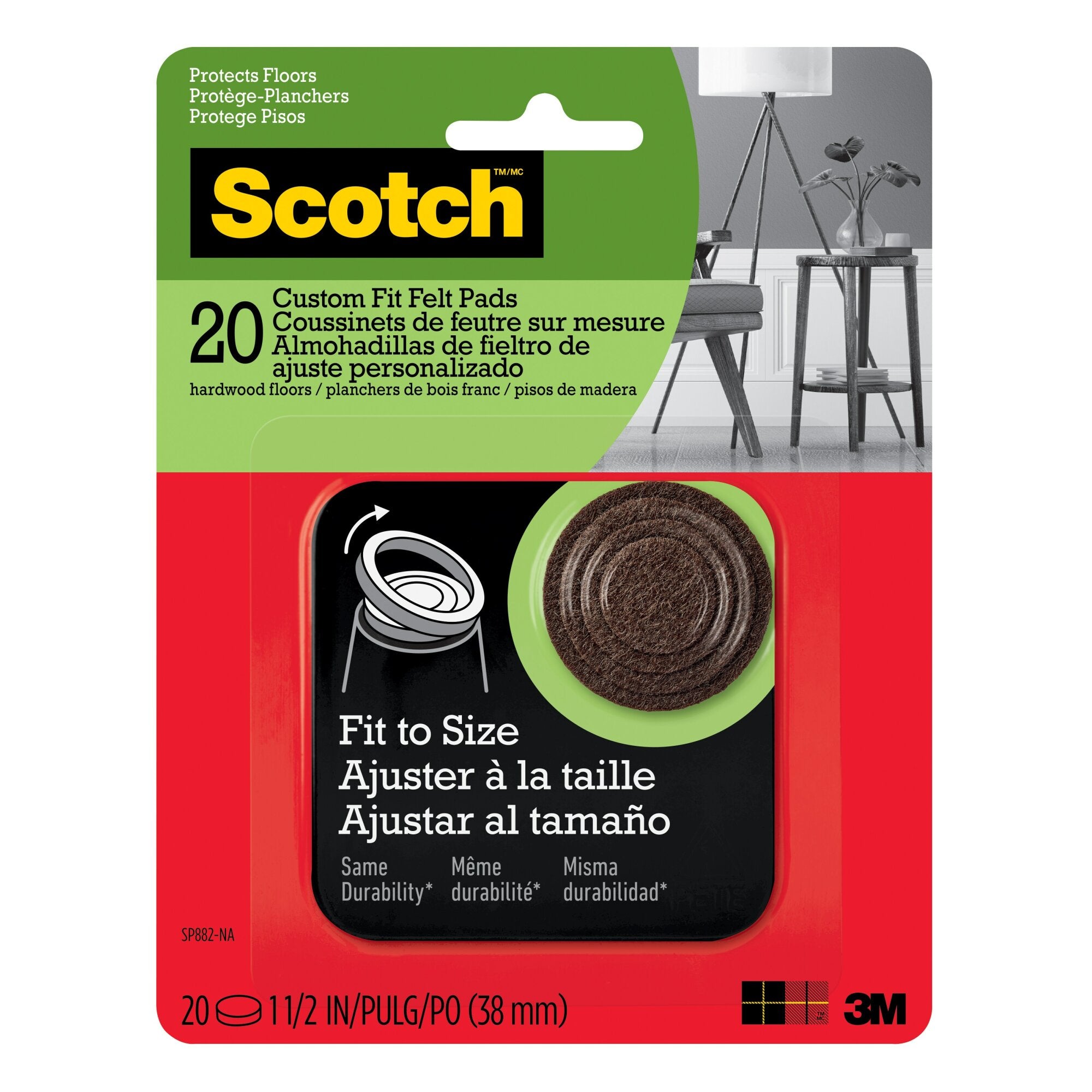 Scotch Custom Fit Felt Pads have die-cut rings for easy size adjustment, strong adhesive for a lasting hold, and are made from durable felt material.Protect the beauty of your floor with adjustable Scotch Custom Fit Felt Pads. Each customizable, durable felt pad features powerful adhesive so they stick to the bottom of furniture legs. Guard your floors against scratches and scuffs caused by sliding a chair, table, or sofa. Innovative die-cut rings make it simple to adjust each pad to the size you need for a just-right fit every time. No more guessing, hand-cutting or hassles! Available in 2 neutral colors to suit your home decor, these handy furniture accessories fit the job.