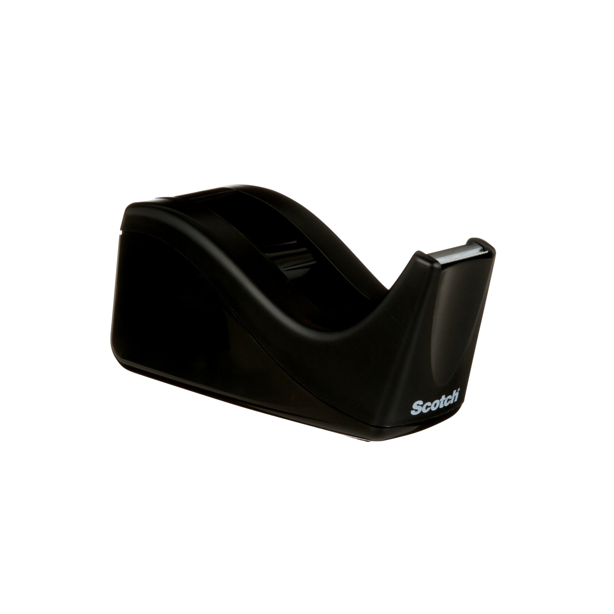 Scotch® Desktop Office Tape Dispenser is a deluxe, black two tone desktop tape dispenser with a weighted base. The sleek wave design complements any décor. The weighted, non skid base is ideal for easy, one handed dispensing. It has an attached tape hub to prevent loss and a high quality cutting blade, designed to last for years. Dispenses standard tapes on a 1 in. core up to 3/4 in. wide and 1500 in. long. Scotch® Tape Dispensers allow you to have your favorite tapes handy and ready to use!