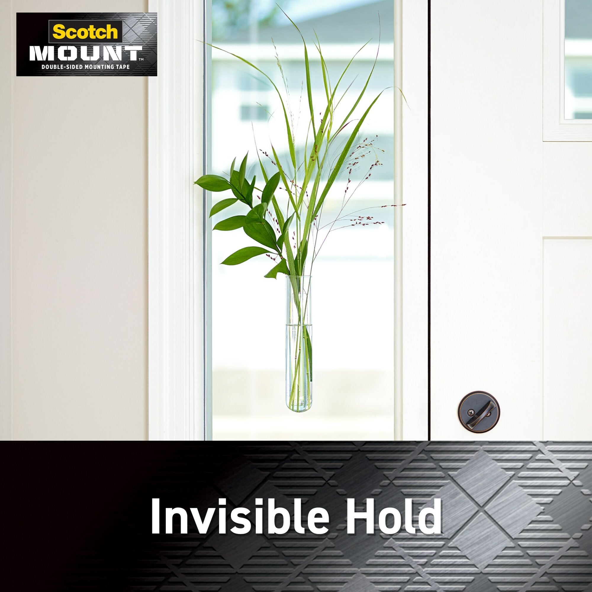Scotch-Mount Clear Double-Sided Mounting Tape features 3M Industrial Strength Adhesive. Holding up to 6 lbs, this invisible tape can be used indoors and is ideal on glass, metal, ceramic tile and acrylic when you want to feature what you are hanging and not how it is hung.For items that need an undetectable mounting means, reach for the stealthy adhering power of Scotch-Mount™ Clear Double-Sided Mounting Strips. Virtually clear, these double-sided permanent strips are perfect for mounting glass, tiles and artwork. Their strong bond holds up to 6 pounds, without the hassle of nails or a hammer thanks to 3M™ industrial strength adhesive. So whether you're mounting acrylic cosmetic organizers or a translucent picture frame, affix it confidently with Scotch-Mount™ Clear Double-Sided Mounting Strips.