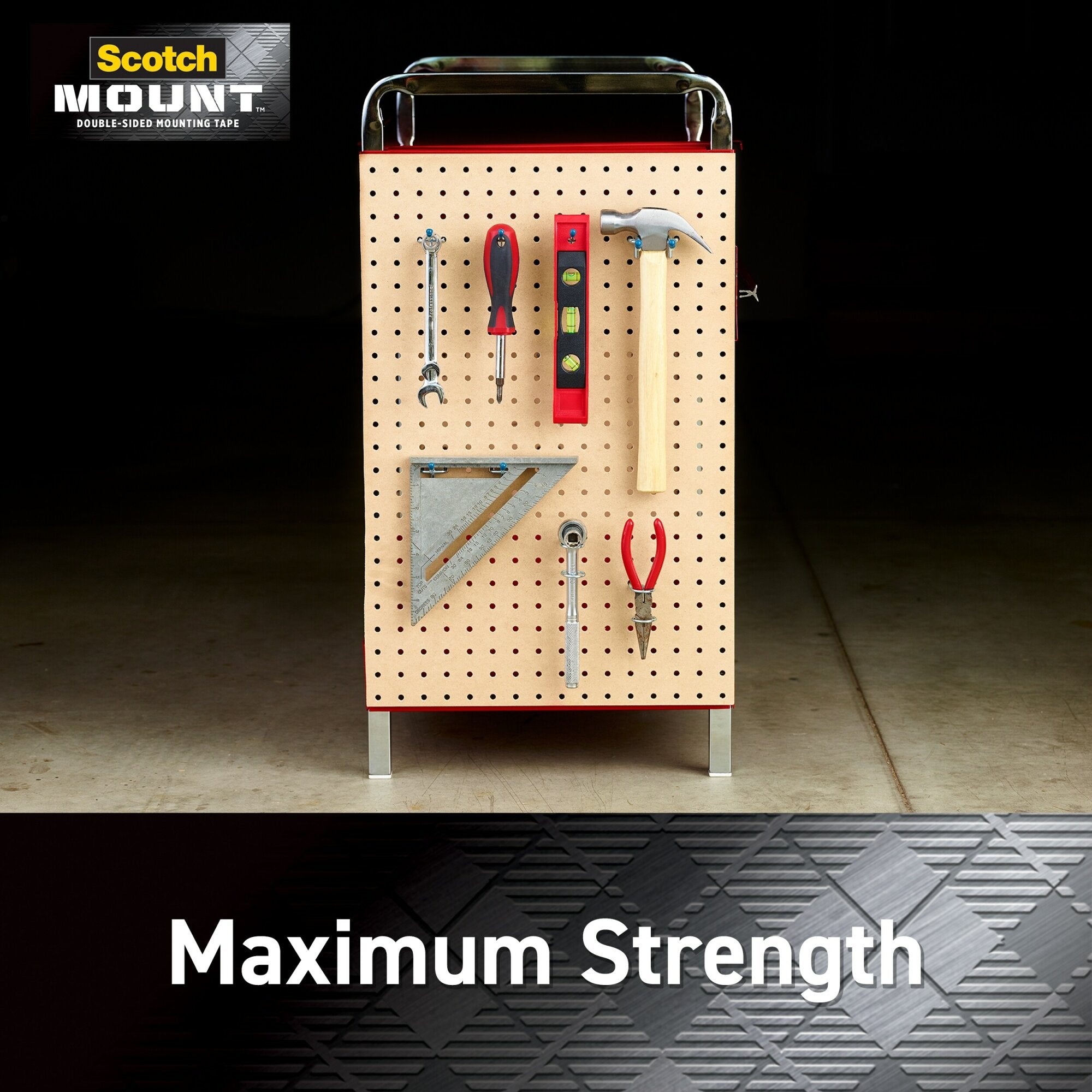 Scotch-Mount Extreme Double-Sided Mounting Strips features 3M Industrial Strength Adhesive. Holding up to 12 lbs this maximum strength, conformable tape can be used indoors and outdoors.For your toughest jobs, go for our strongest hold–Scotch-Mount™ Extreme Double-Sided Mounting Strips with 3M™ industrial strength adhesive. Equipped with our powerful permanent adhesive, these double-sided strips defy gravity, holding an item up to 12 pounds. They're weather resistant for a long lasting bond, indoors and outdoors. So whether you’re mounting artwork in your new apartment, or adding wall organization to the garage, Scotch-Mount™ Extreme Double-Sided Mounting Strips do the job quickly, easily and without the hassle of tools.