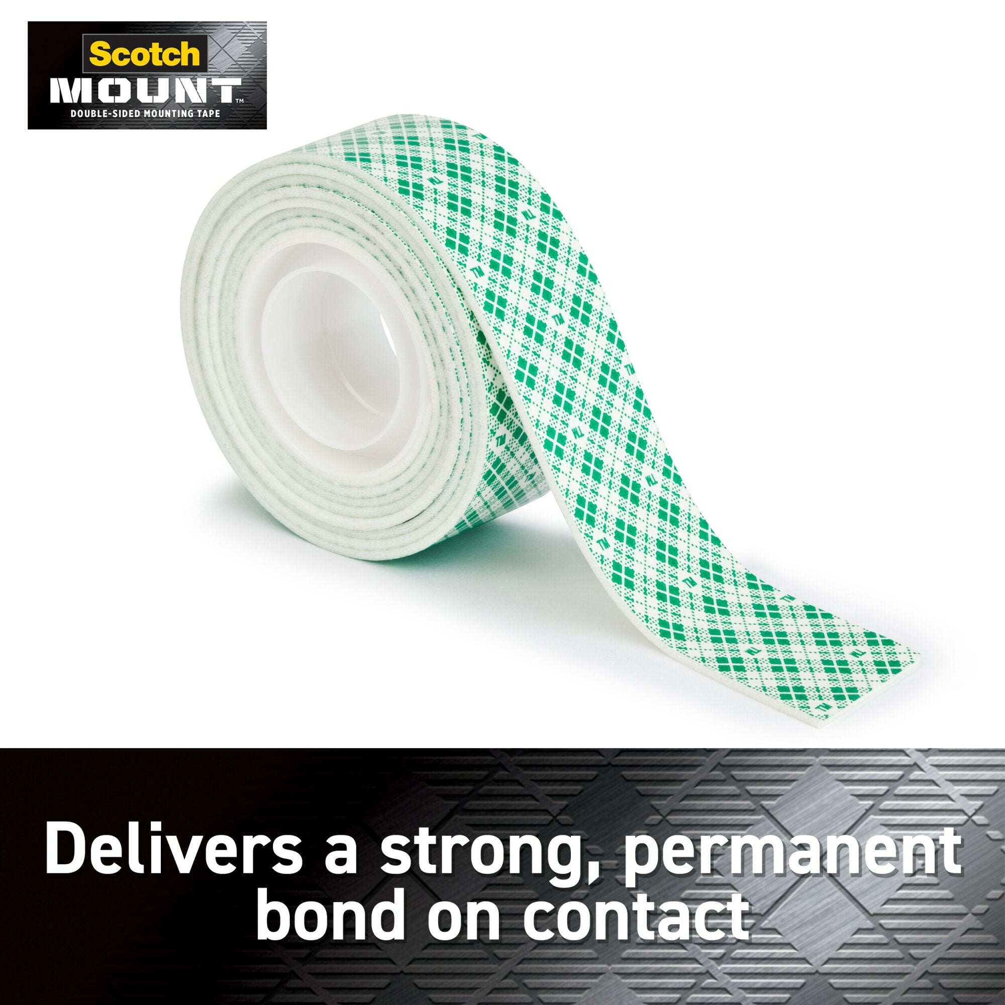 Scotch-Mount Indoor Double-Sided Mounting Tape features 3M Industrial Strength Adhesive. Holding up to 15 lbs, this foam tape can be used indoors and is ideal for painted drywall and painted and finished wood.Scotch-Mount™ Indoor Double-Sided Mounting Tape is ideal for painted surfaces and allows you to quickly and easily beautify and organize your space. Whether you’re creating a gallery wall or affixing the family chore chart, this permanent double-sided foam tape holds up to 15 pounds and delivers a strong bond every time because of its 3M™ industrial strength adhesive. Your work is up and ready to admire in 30 seconds flat – no nails or hammer needed. Never let how you’re going to hang it get in the way of your creativity with the powerful adhesion of Scotch-Mount™ Indoor Double- Sided Mounting Tape.