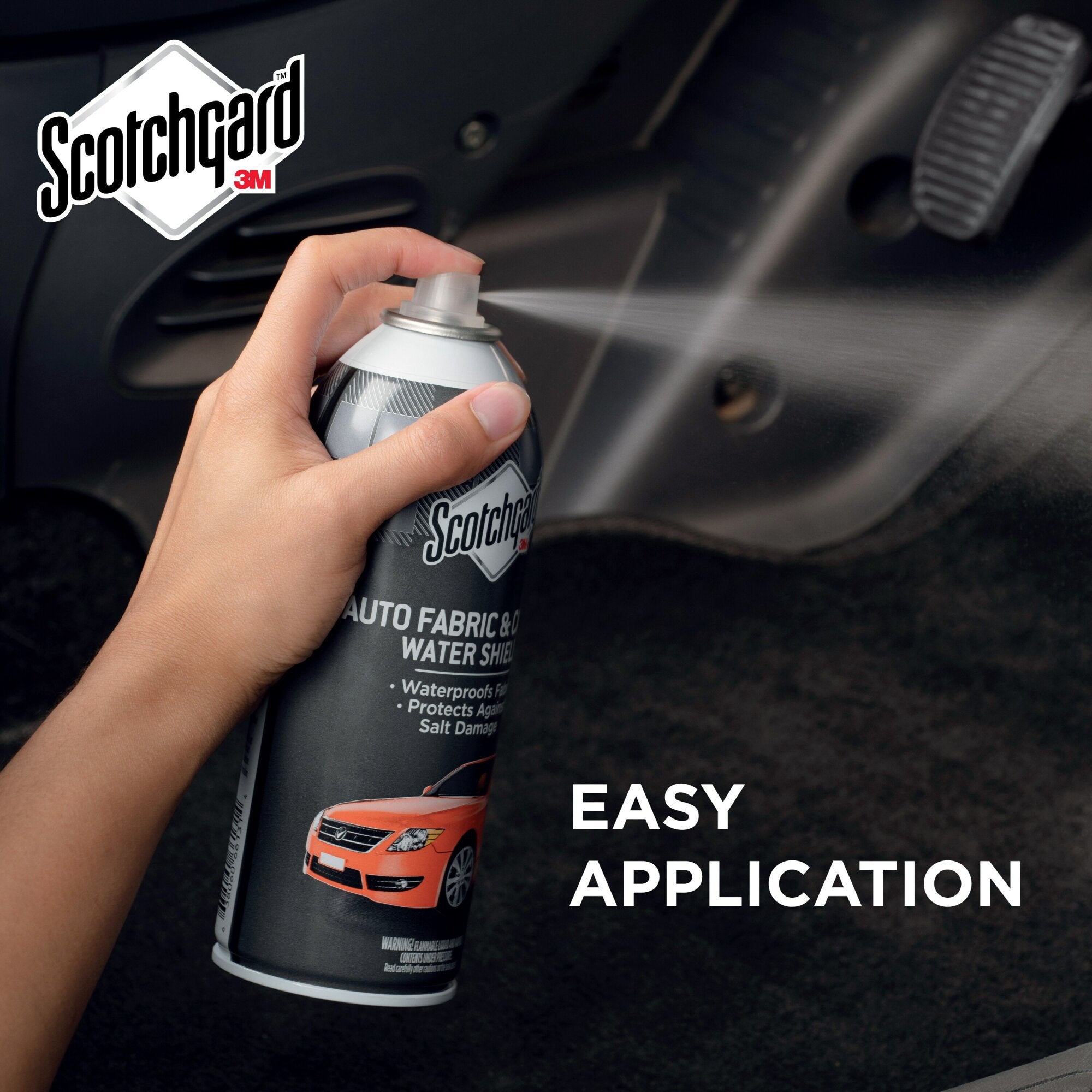 Repels oil and water, blocks stains, protects against soilingKeep the interior of your car looking newer, longer with Scotchgard Auto Fabric & Carpet Water Shield. Whether your kids' car seats need an extra layer of defense, or you're trying to keep winter from doing a number on your carpets, Scotchgard Auto Fabric & Carpet Water Shield helps keep wintry mixes in check with superior resistance. Plus, it doesn't change the feel of fabrics, so upholstery stays soft. Our cars are an extension of our homes, so why not give them the same unbeatable protection with Scotchgard Auto Fabric & Carpet Water Shield.