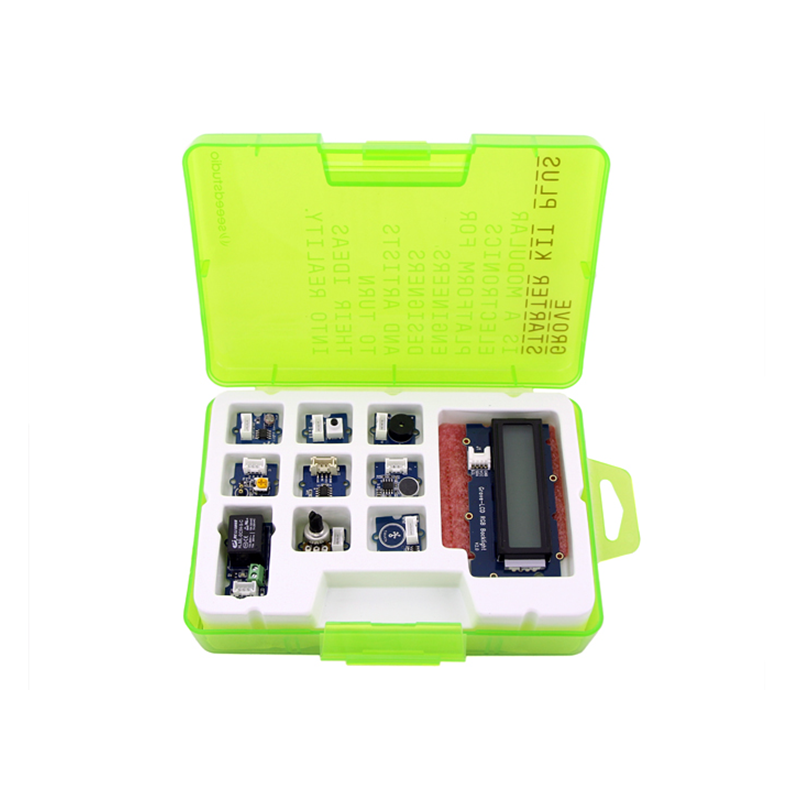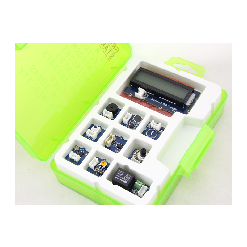 Grove is a modular electronic platform for quick prototyping. Every module has one function, such as touch sensing, creating audio effect and so on. Just plug the modules you need to the base shield, then you are ready to test your idea buds. This Grove - Starter Kit for Arduino is upgraded version of our Grove Starter Kit plus. We included more frequently encountered modules in this kit to support your concept buildup. The Changes: Optimize the internal slot structure, using technology to make our products inside plastic boxes more regularized, more protective. Upgrade Instructions for creative poster form, more streamlined and intuitive description for each Grove-Sensor. Grove-LED increased from three separate PCBA into a. But will still provide three different colors of LED light bulbs for you. To consider the overall playability of the product experience, we optimized the two Grove-Sensors. Grove-Sound Sensor upgrade to V1.2; Grove-Temperature Sensor upgrade to the new SMD V1.1. Data line upgrade from 24AWG Grove Cable is 26 AWG Grove Cable, wire length is adjusted to the length of 200mm unified model, the number was adjusted to 10 . Screen perfect upgrade for the Grove-LCD RGB Backlight, color screen makes further enhanced playability experience.