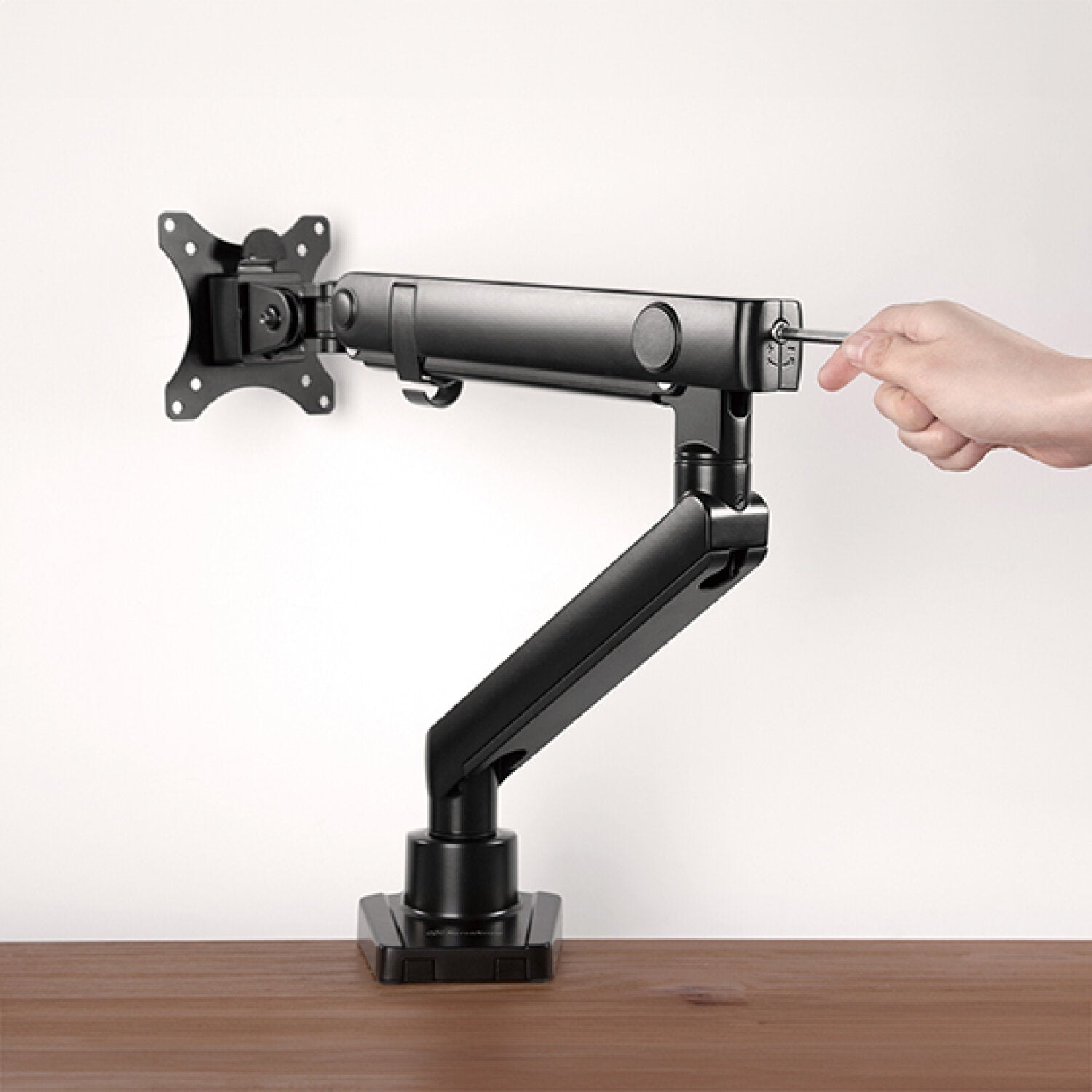 Single ARM LCD LED Monitor Mount Bracket, support up to 32" size monitor, 9KG per ARM,Adjustable, with 90° Rotation, 90° tilt up/ down, 90° tilt left/ right & Pull Out 90° Swivel Arm - Max VESA 100x100, Black.Incorporated with a mechanical spring mechanism, the ARM13 monitor arm ensures effortless raising and lowering of installed monitors, supporting monitors up to 32” in size and 9 kg in weight, while providing ease of adjustment and enhanced ergonomic comfort. The ARM13 offers a wide range of adjustments, providing multiple axes of rotation, allowing you to effortlessly find the best position to share your screens with those around you. It boasts ±90° swivel and tilt capabilities, as well as a 360° pivot rotation, ensuring versatile and convenient screen positioning for optimal viewing experiences. ARM13 provides users with two convenient and reliable mounting options: the clamp mount and the grommet mount. Regardless of the chosen approach, both mechanisms guarantee a secure and stable attachment. Whether it's the need for portrait mode to review lengthy documents or landscape mode for an immersive gaming session, the ARM13 ensures optimal visibility and ergonomic comfort.