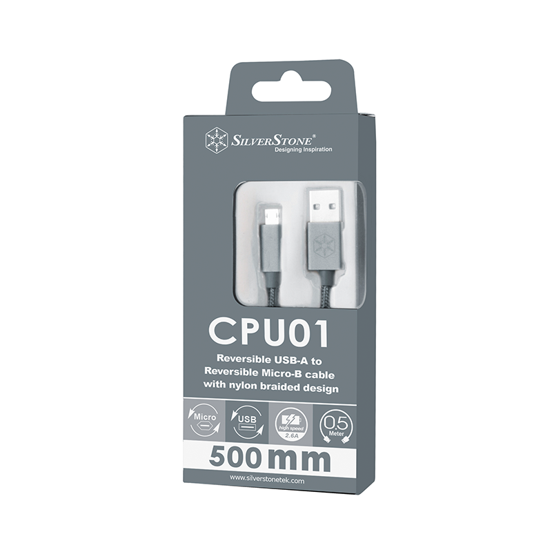 SilverStone CPU01C Reversible USB-A to Reversible Micro-B cable