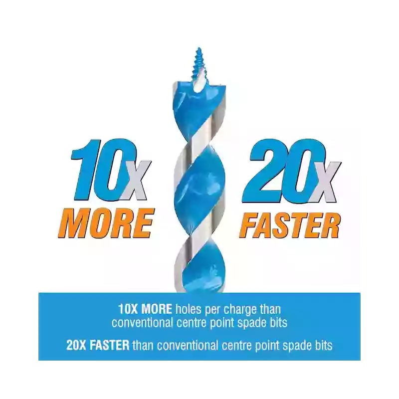 - Unlike other auger bits with a self-feeding thread point, this patent pending tip won’t clog, won’t wander, and drills faster than the competition
