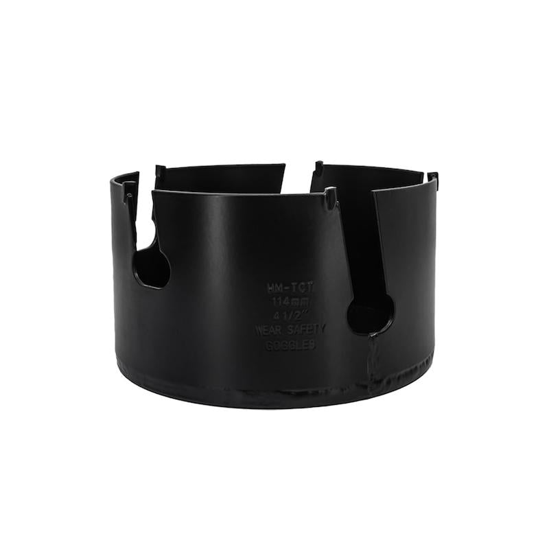Spyder's Tungsten Carbide-Tipped (TCT) hole saws cut more materials up to 5x faster and make up to 10x more cuts — lasting longer than conventional bi-metal hole saws. TCT hole saws drill through wood, MDF, fiber cement board, porous concrete block, ceramic wall tile, plastic/PVS and more. Use with Spyder's Rapid Core Eject arbor system to remove cores without prying (drill hole, press button, pull back the hole saw, and eject the core), cut at an angle, and enlarge existing holes using two adapters on one pilot bit . All TCT, Tarantula, and Bi-Metal hole saws fit on Spyder Rapid Core Eject arbors and pilot bits (sold separately), and on universal hole saw arbors. Spyder's TCT hole saw is the pro's choice for innovation, high performance, speed, and versatility — drill more holes in more materials in less time. Not for use in hammer mode, or for drilling metal, wood with nails, harder, abrasive materials, or block/brick/tile applications with a Mohs hardness of 6 or greater. Always use a drill with a support handle.