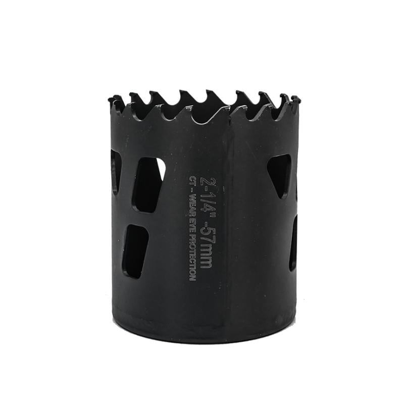 Spyder's carbide-tipped Tarantula hole saws cut the toughest materials including steel, stainless steel, nail-embedded wood, fiber cement board, plastics, and more. Durable tungsten carbide cutting teeth make up to 50x more cuts than conventional bi-metal hole saws, and they are up to 10x faster — cutting through the toughest materials and extending bit life. Use with Spyder's Rapid Core Eject arbor system to remove cores without prying (drill hole, press button, pull back the hole saw, and eject the core), cut at an angle, and enlarge existing holes using two adapters on one pilot bit (adapters and pilot bit sold separately). Spyder TCT, Bi-Metal, and Tarantula hole saws fit on Spyder's Rapid Core Eject arbor and pilot bits and on universal hole saw arbors. Using a drill motor with a support handle is recommended. Not for use in hammer mode or on harder, more abrasive materials.