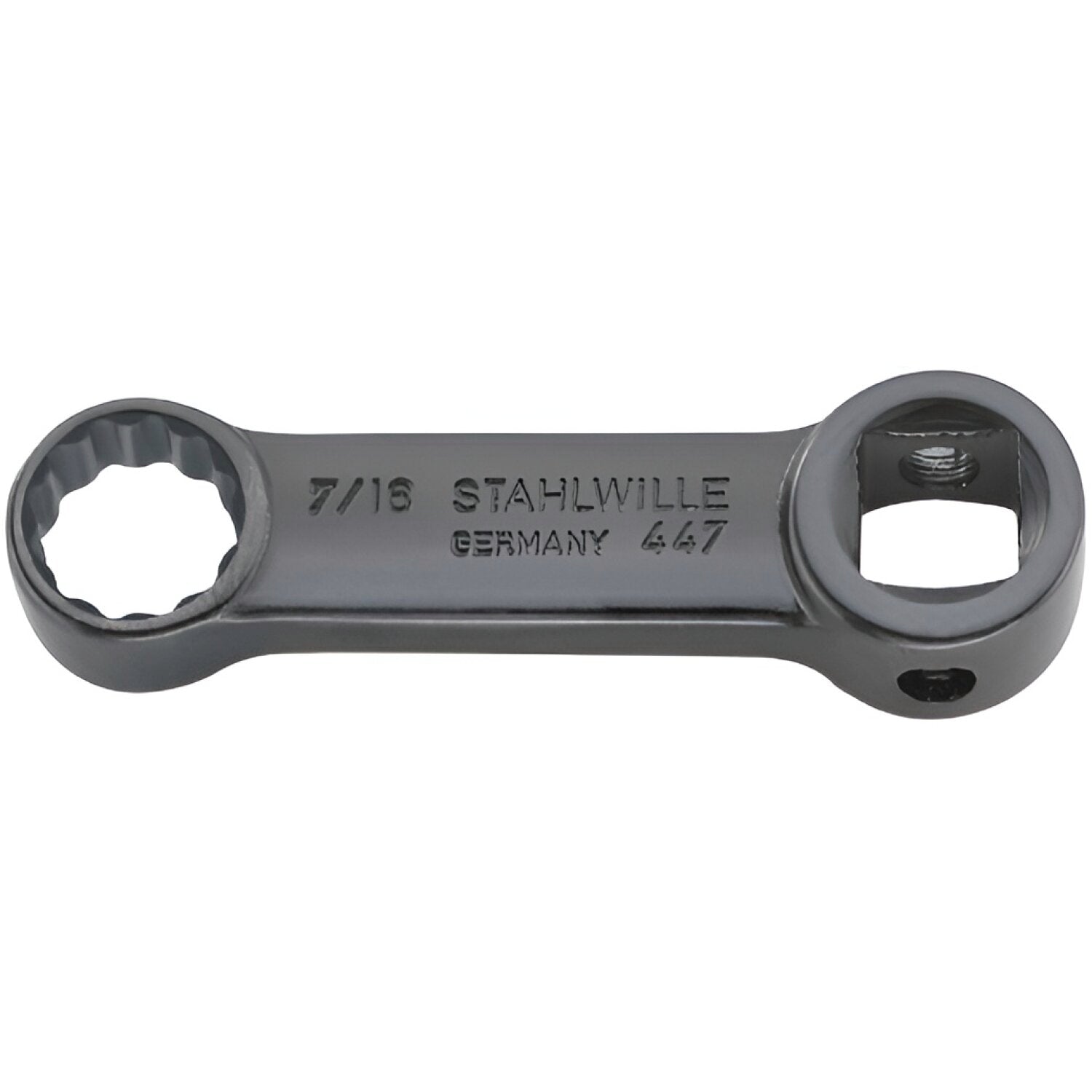 Stahlwille 447 Adaptor, 3/8"; 7 mm Caution! Modified settings on torque wrench, American sizes: SAE AS 954-E, HPQ high performance steel, gunmetal finish.