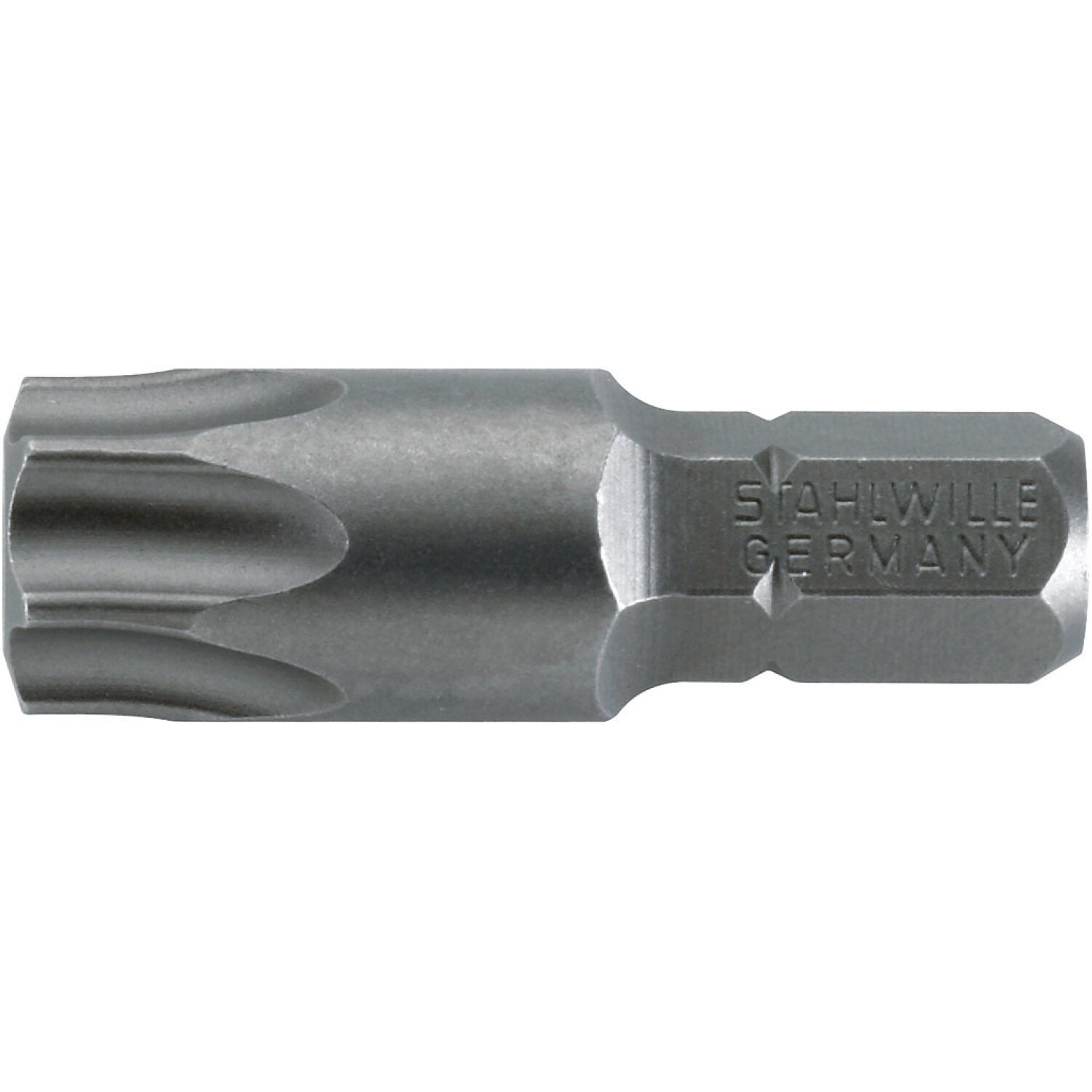 This insert bit is designed for recessed TORX® screws. It features an external hex manufactured according to DIN 3126 and ISO 1173 standards, ensuring precise fit and reliable performance.