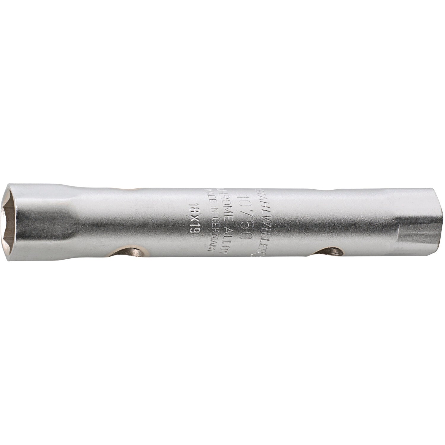 - The extended shape of the pipe double socket wrench serves as a practical handle and can therefore be used ideally even in narrow, space-limited work spaces.