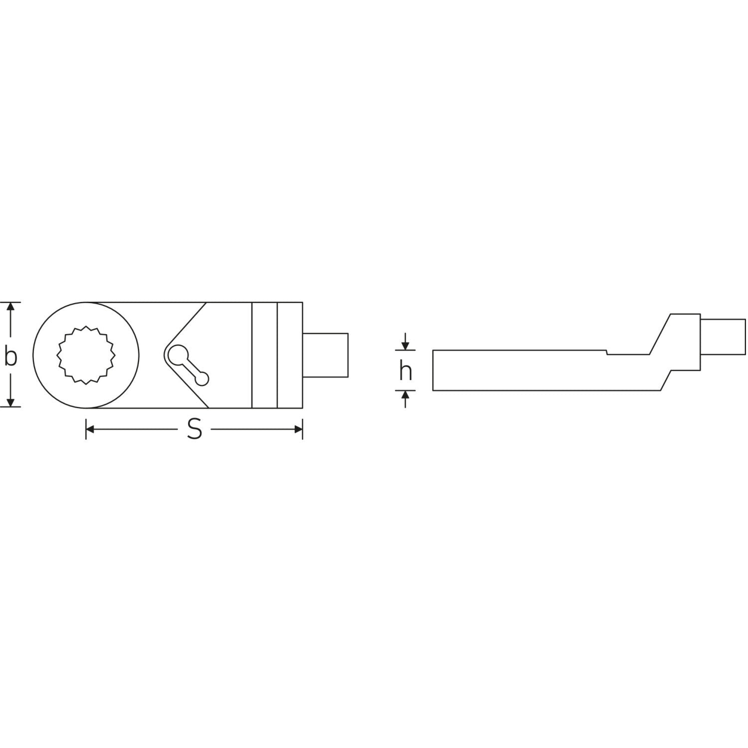 This robust insert tool is designed for torque wrenches with a 9 x 12 mm insert system. The integrated ratchet with 72 teeth allows ratcheting at an angle of just 5°. A flush-mounted changeover lever for clockwise and counterclockwise rotation prevents unintentional switching. The flat design makes it easier to work in tight spaces. It is made of HPQ® wear-resistant high-performance steel with a black gunmetal finish for durability and corrosion protection.