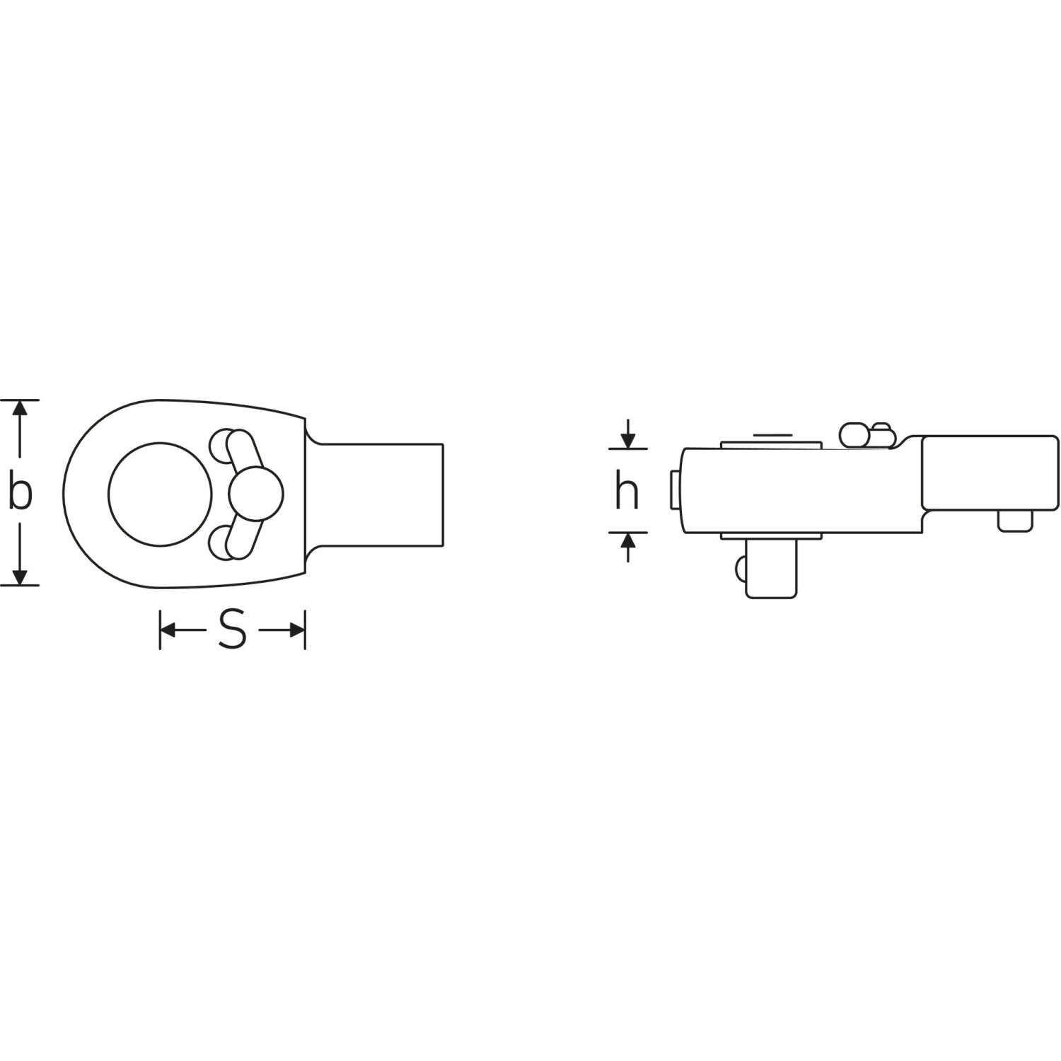 Reversible ratchet designed for torque wrenches with an interchangeable insert system. Features 22 precision teeth, allowing smooth and accurate operation for tightening and loosening fasteners.